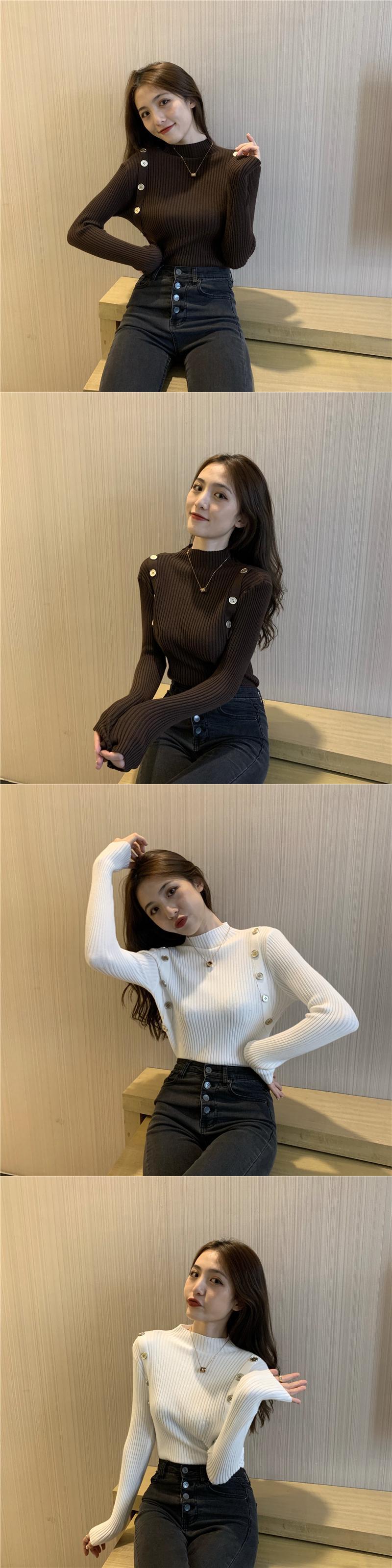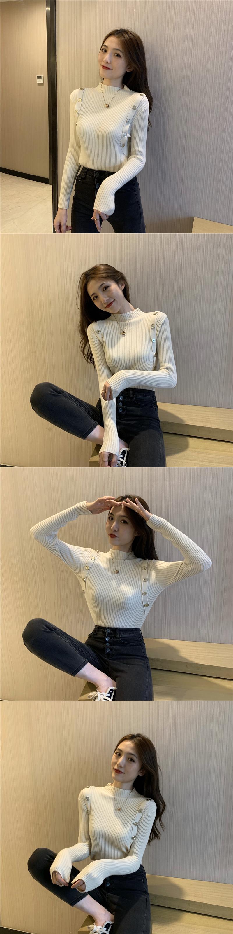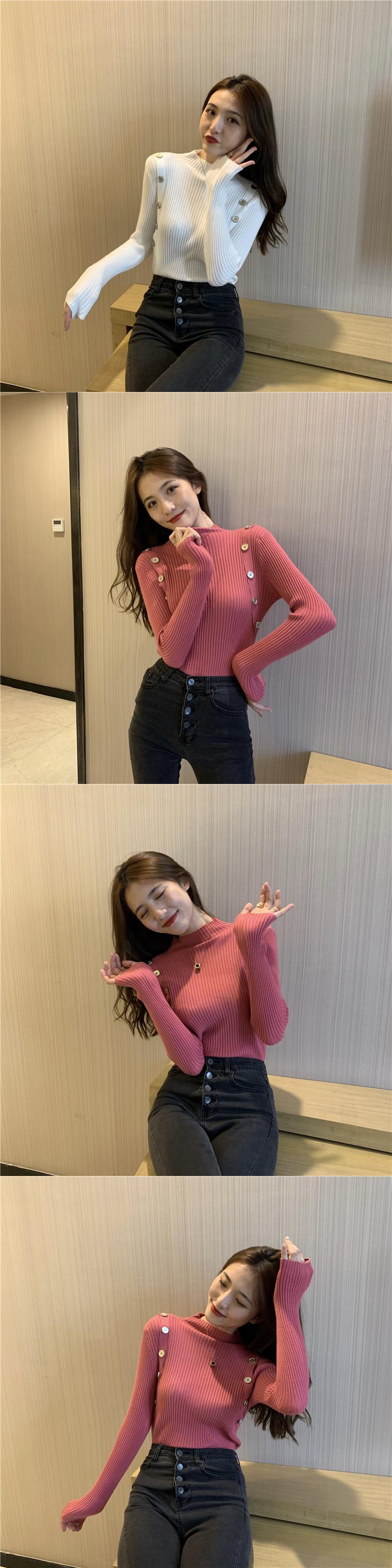 オータムウィンターボタンニットセーター シャツ ブラウス ロング 秋物 冬物 YY-ファッション21344117023