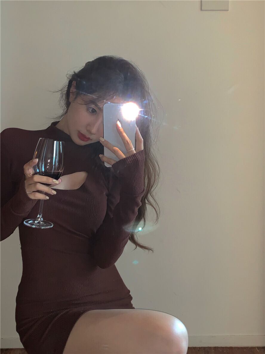 スタンダードハイウェストドレス オータムウィンターホルタースカート ショート ロング レトロ 秋物 冬物 YY-ファッション65678144189