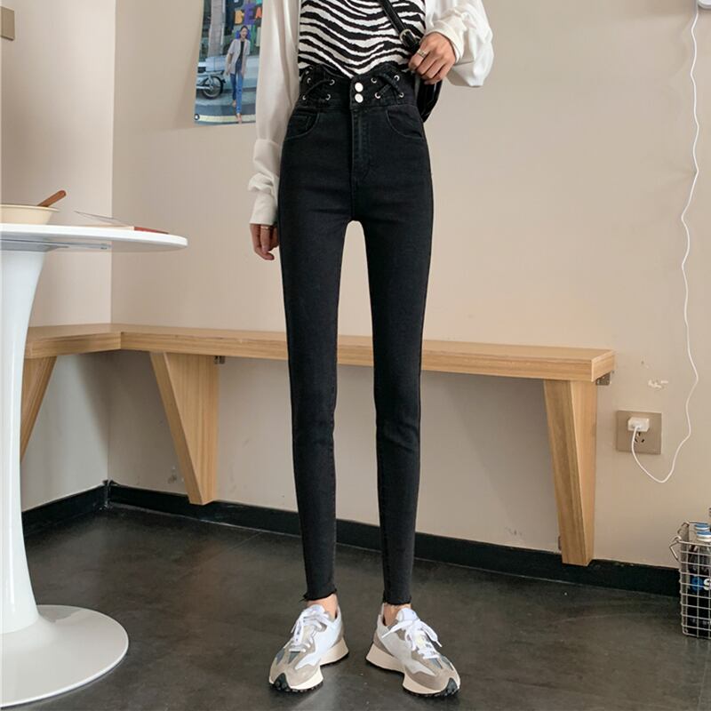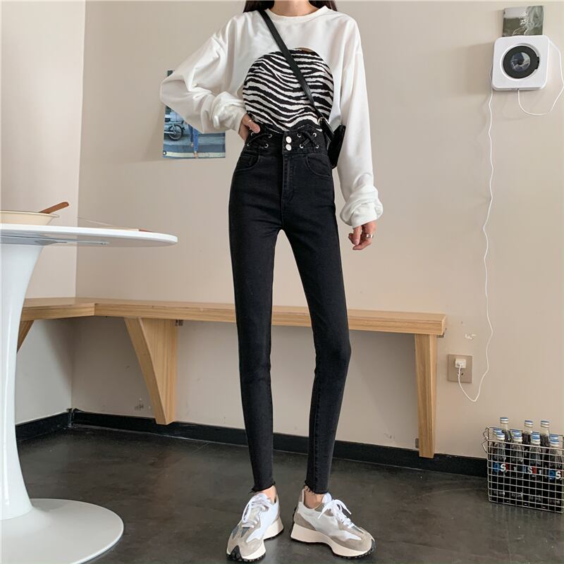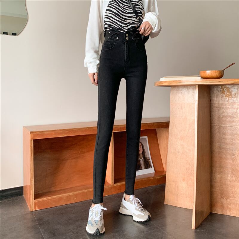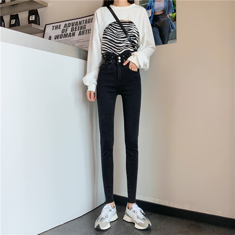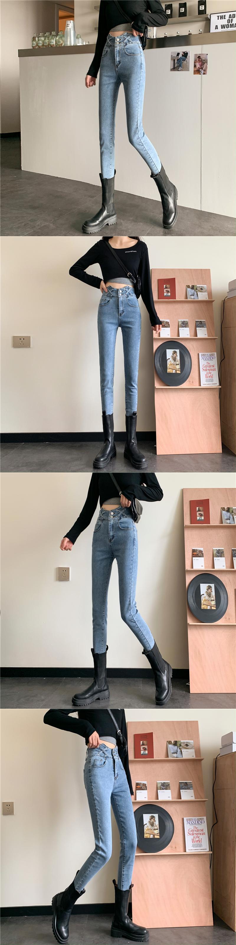 オータムウィンターパンツ ハイウェストウェストジーンズ スプリングスリム 春物 秋物 冬物 YY-ファッション12247340322