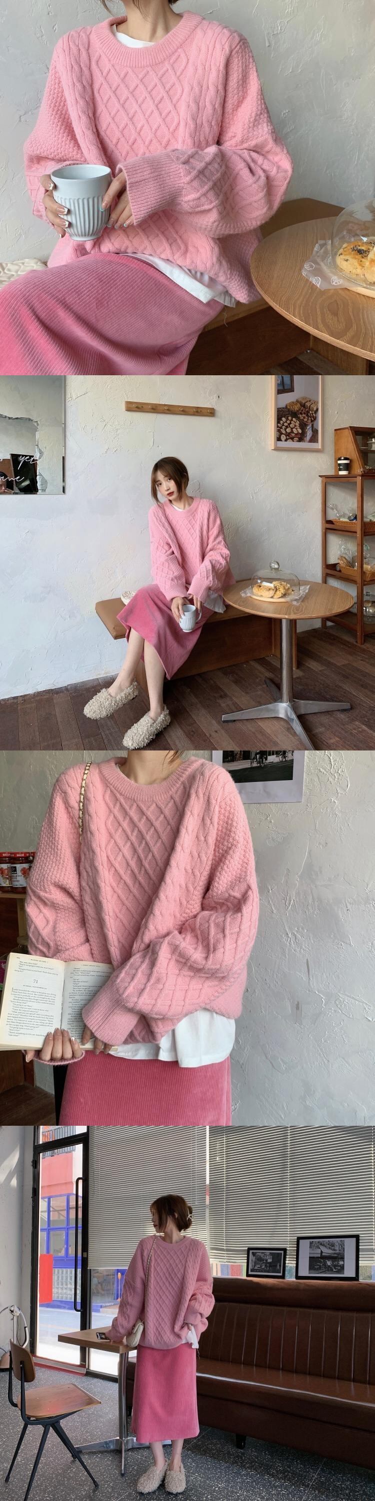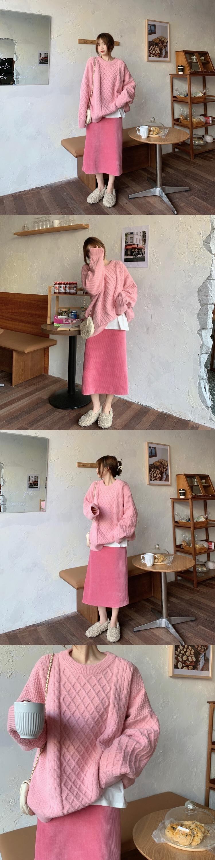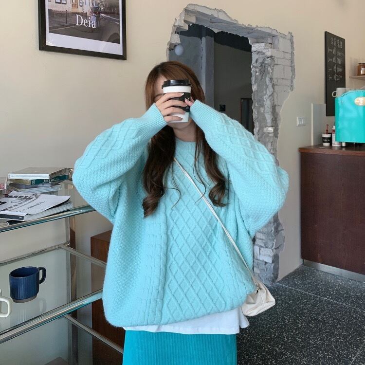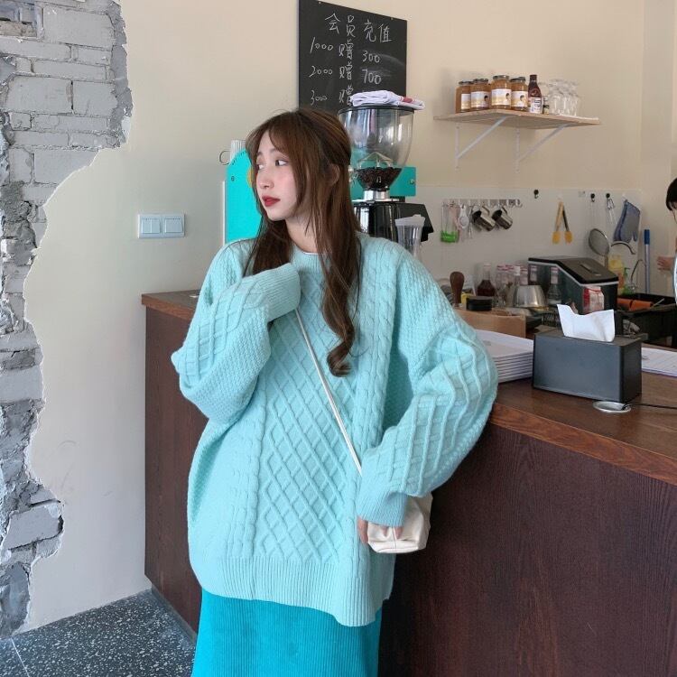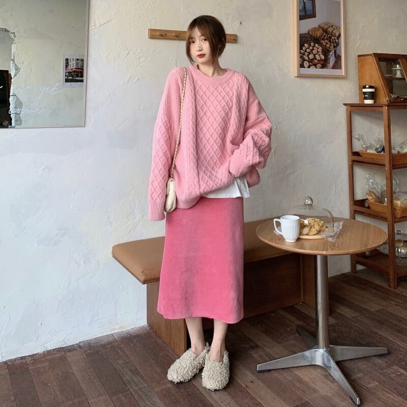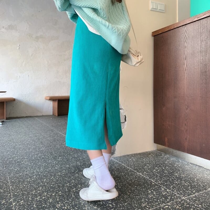 オータムブループルオーバー セーター ハイウェストウェストスリットストレッチスカート エラスティック 伸縮 秋物 YY-ファッション53921733871