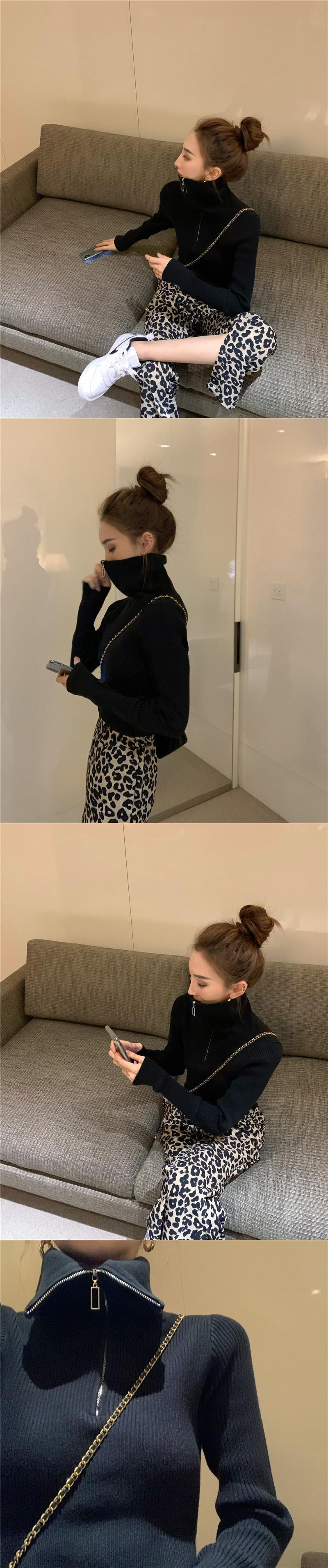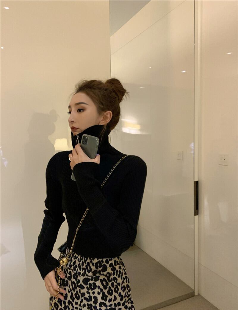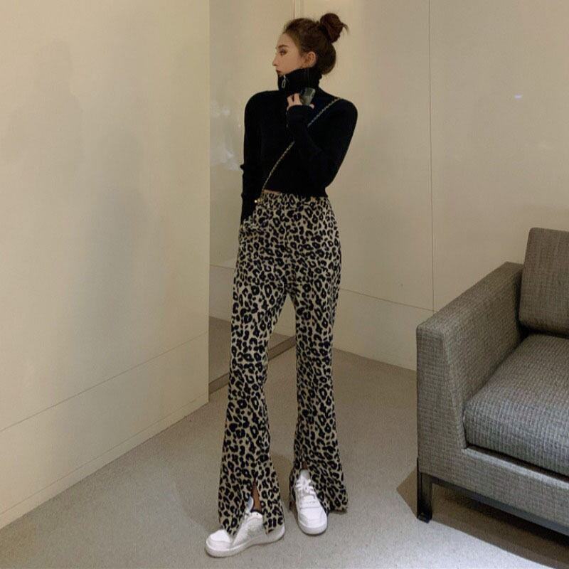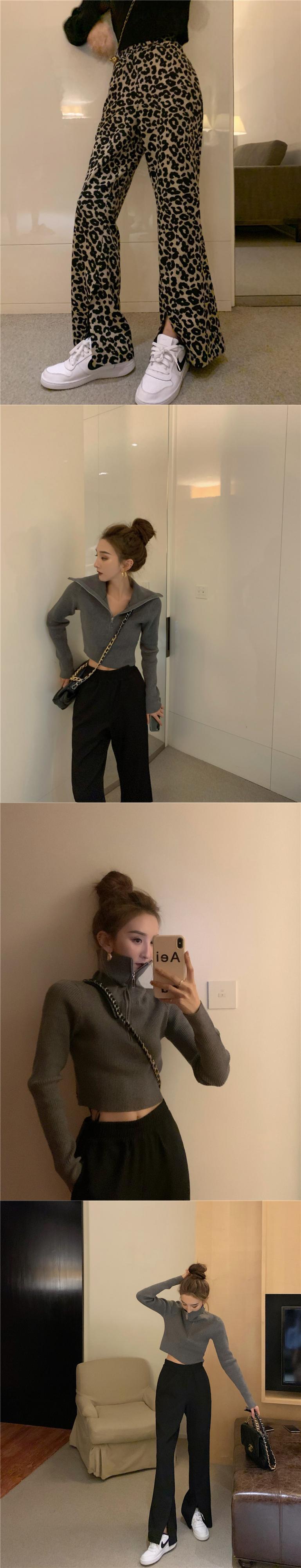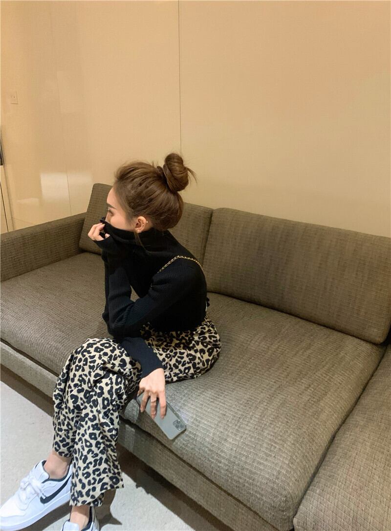 色:黒いセーター,グレーのセーター,ヒョウ柄パンツ,黒いズボン