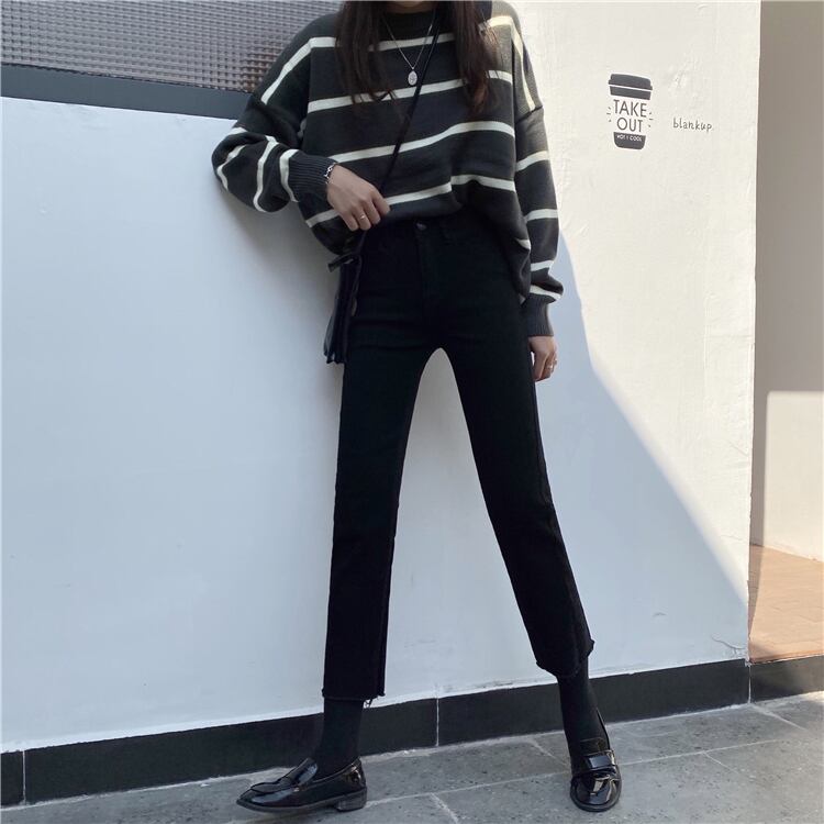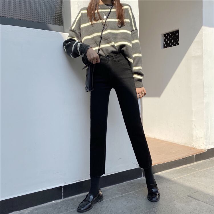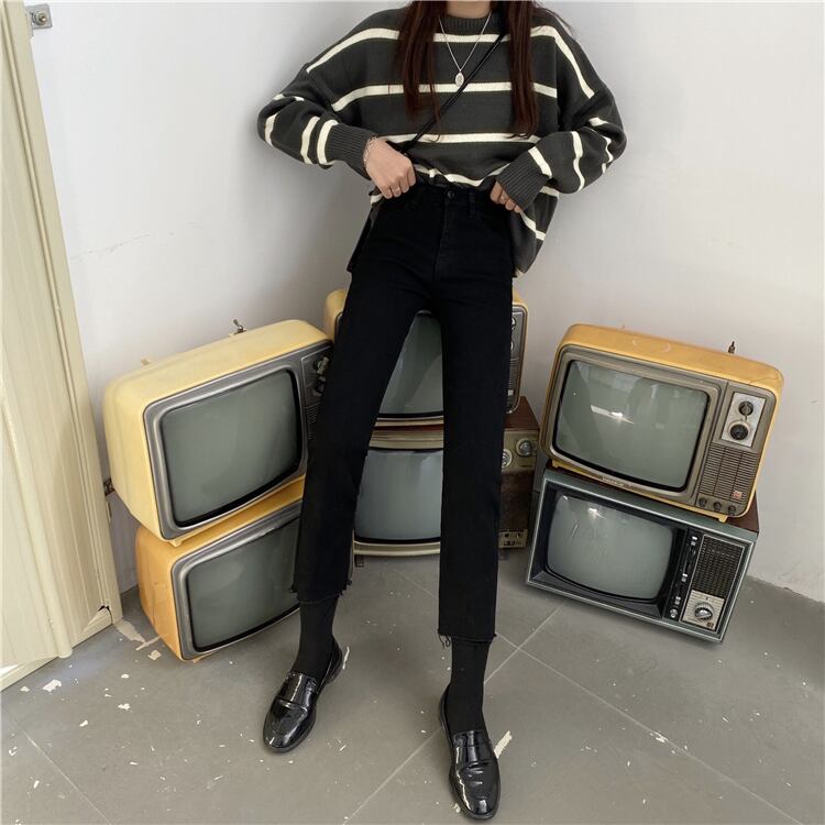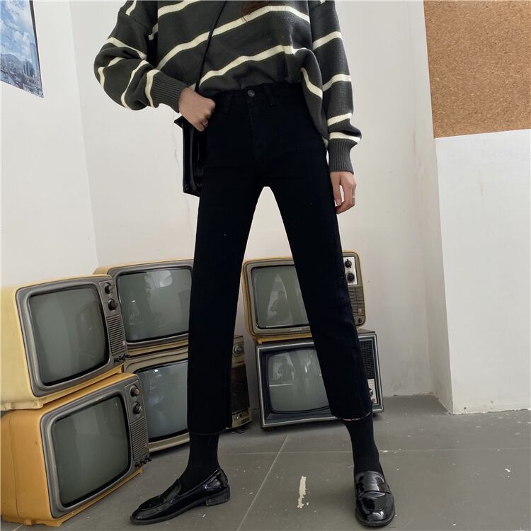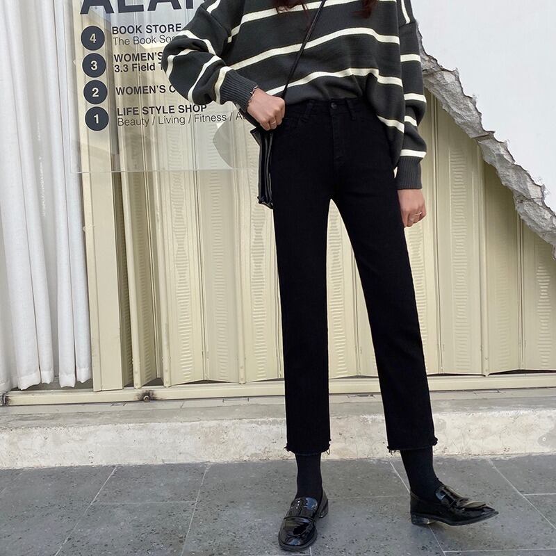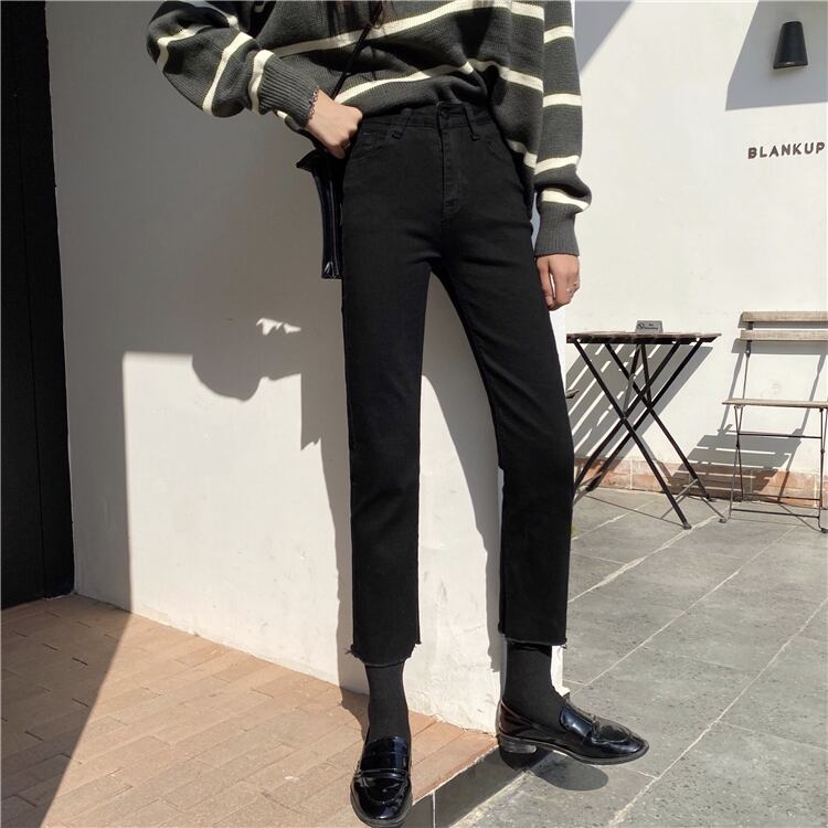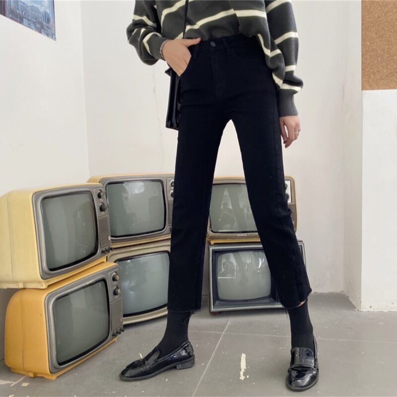 ブラックジーンズ パンツ スプリングハイウェストスリム 春物 YY-ファッション2796171011