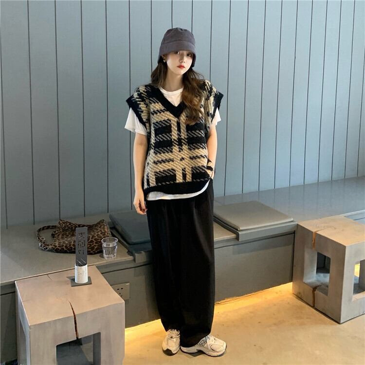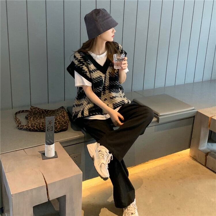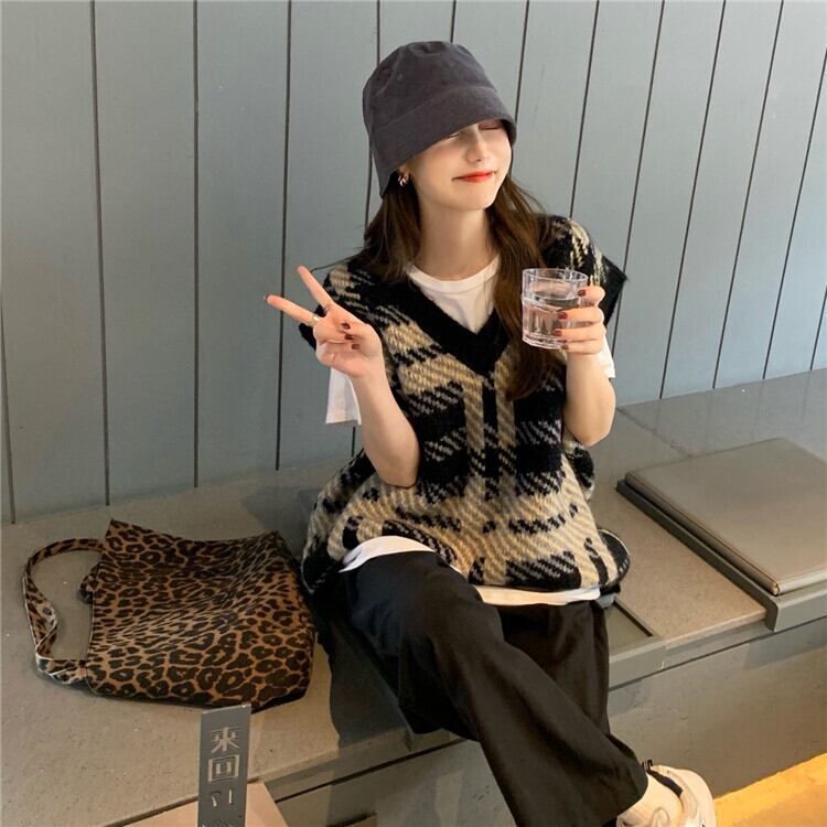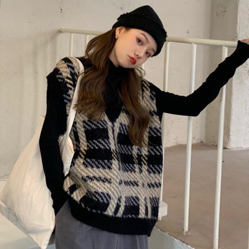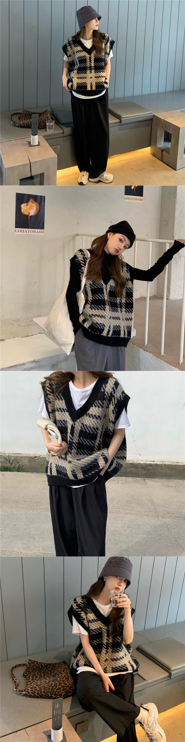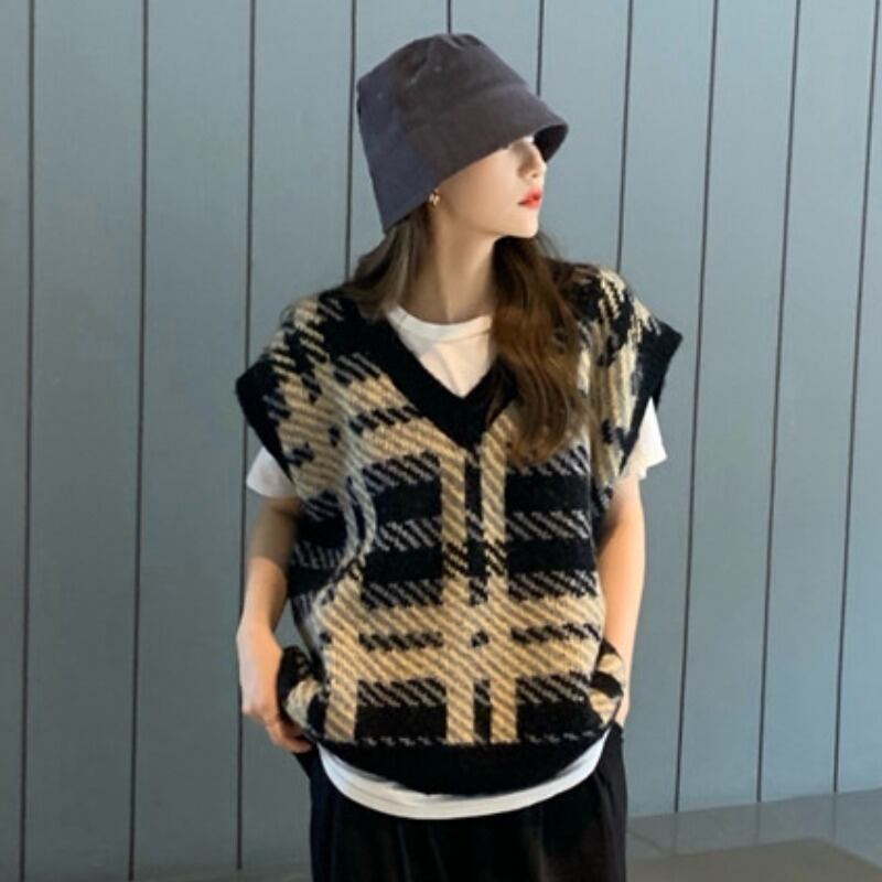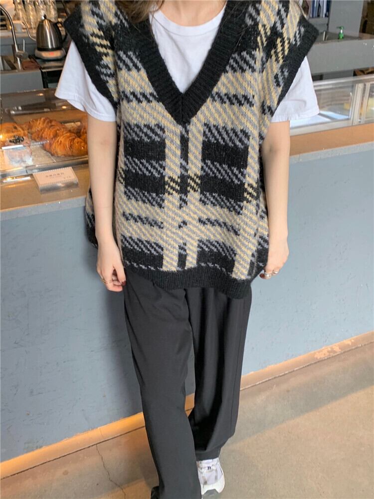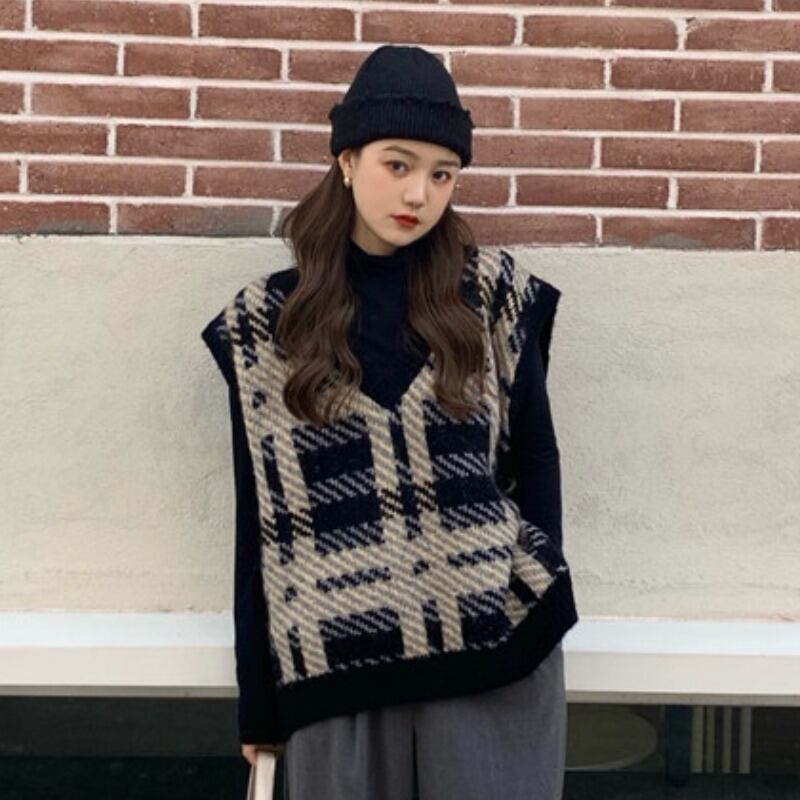 ヴィンテージVネックニットレディースウィンターセーター ルーズ 冬物 ビンテージ YY-ファッション66848386511