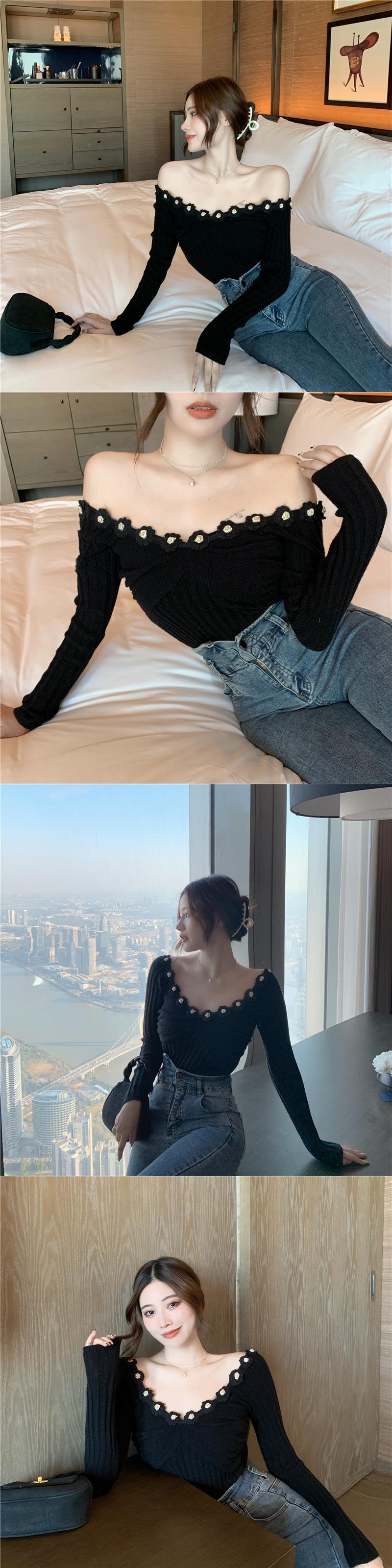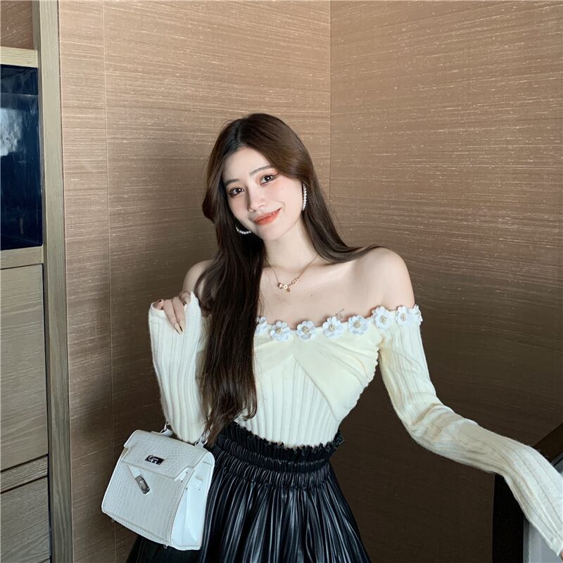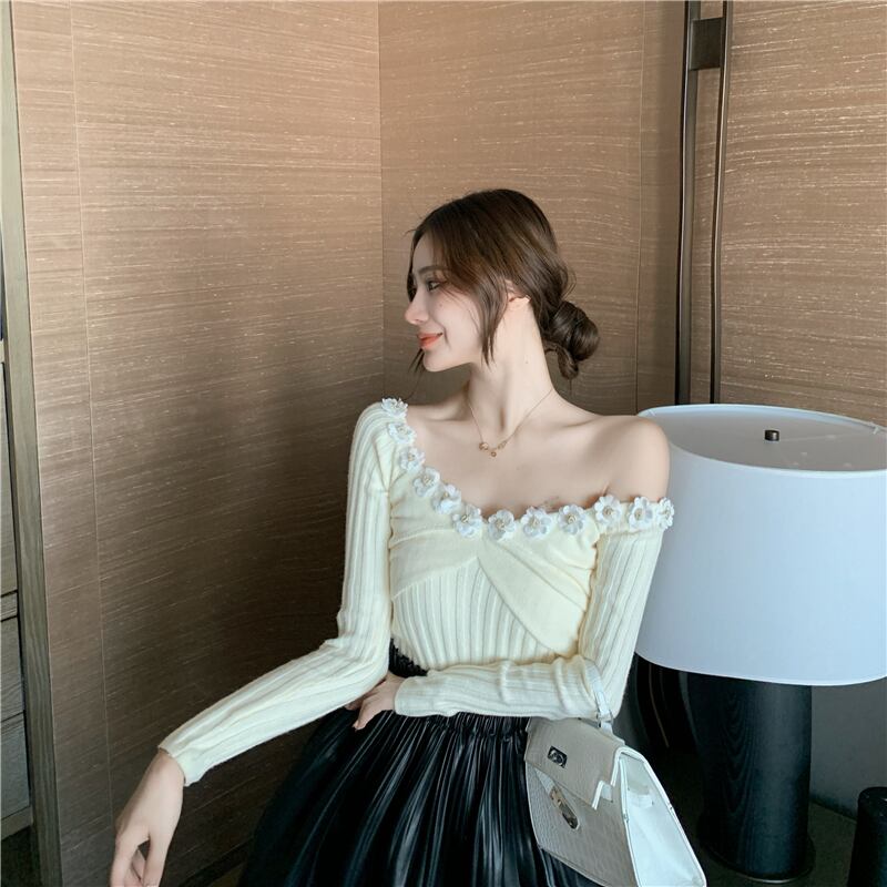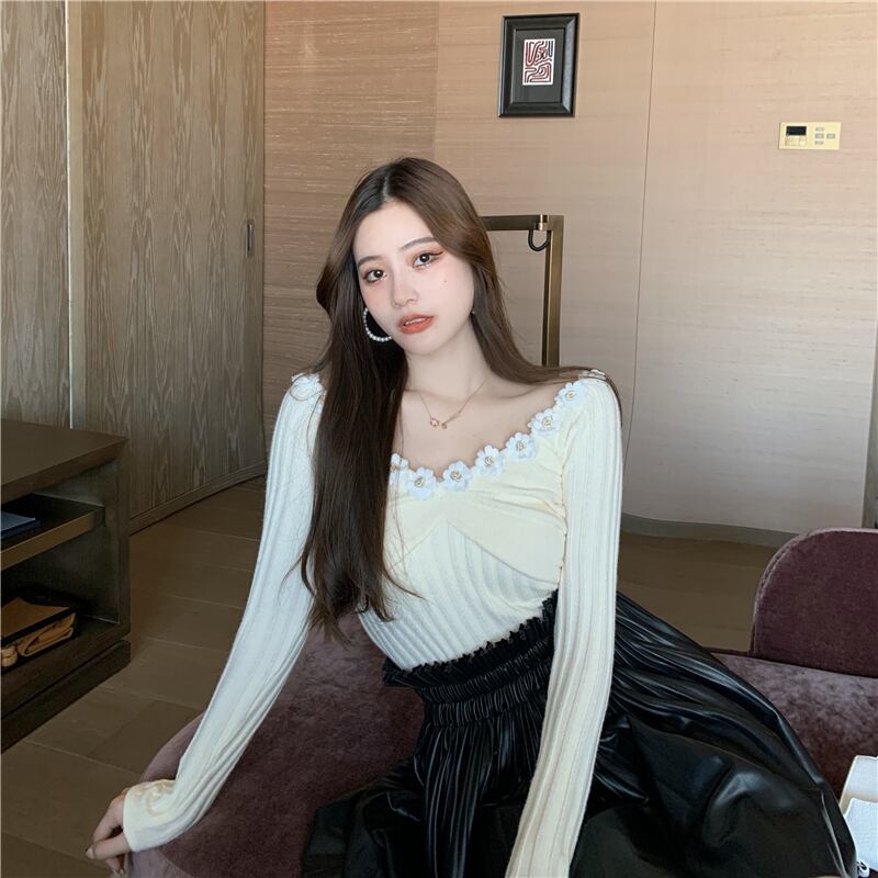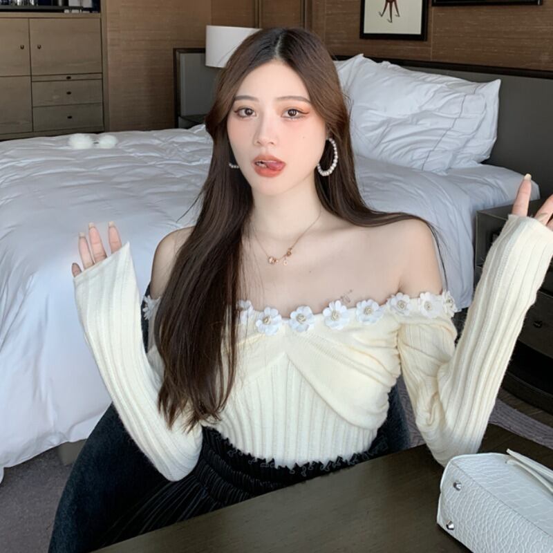 スプリングオータムFlowerデザイン ニットセーター スリムショートシャツ トップス 春物 秋物 フラワーデザイン YY-ファッション13565641932