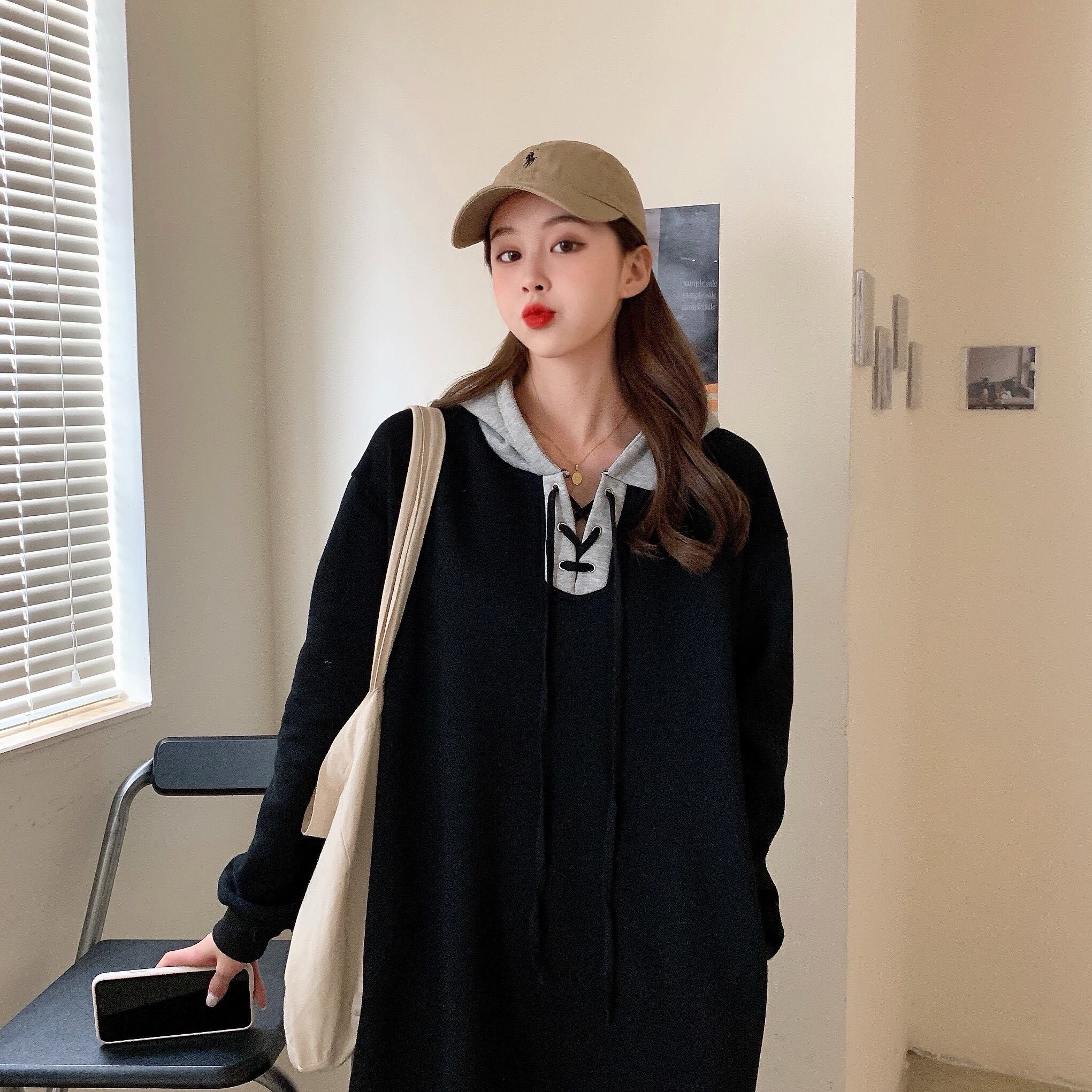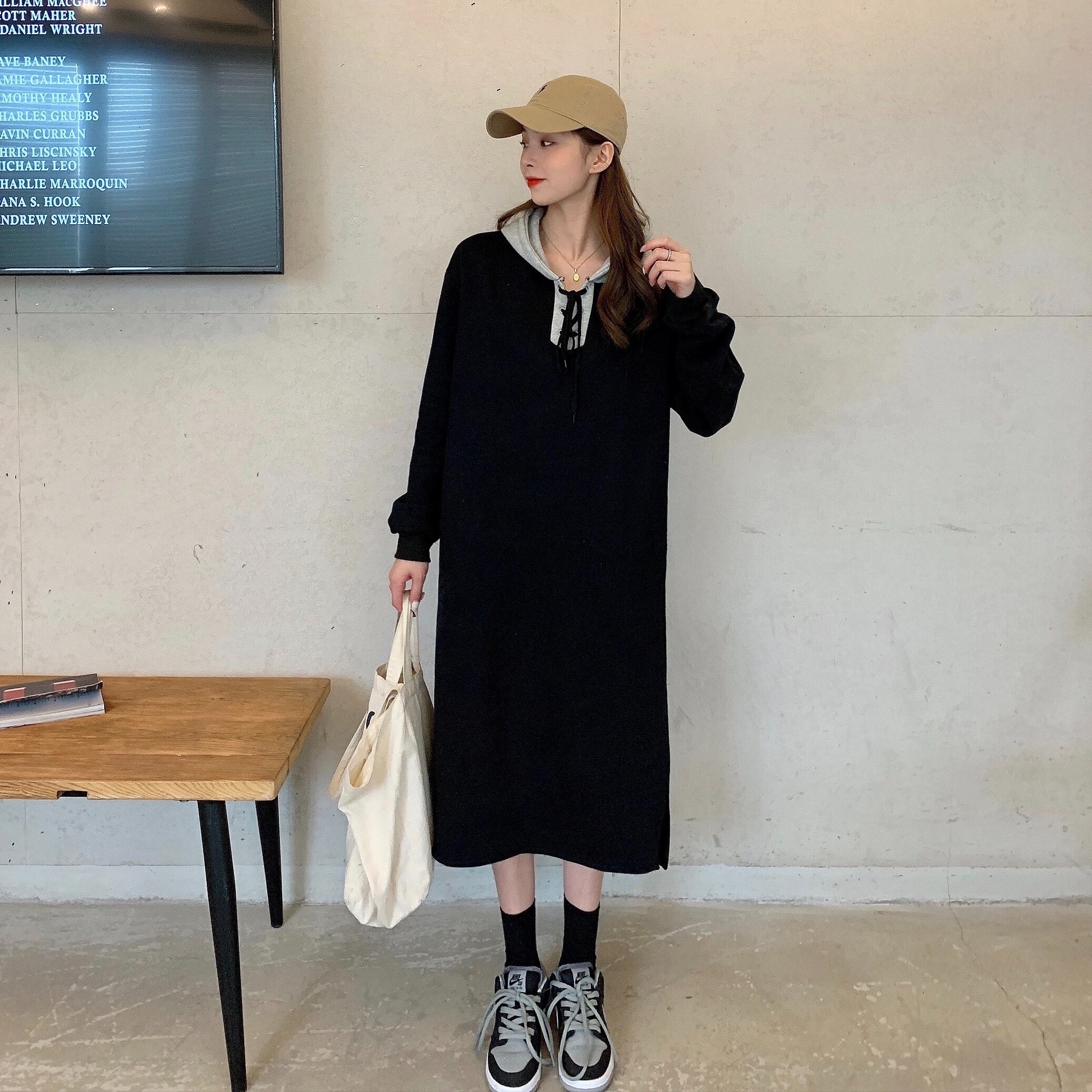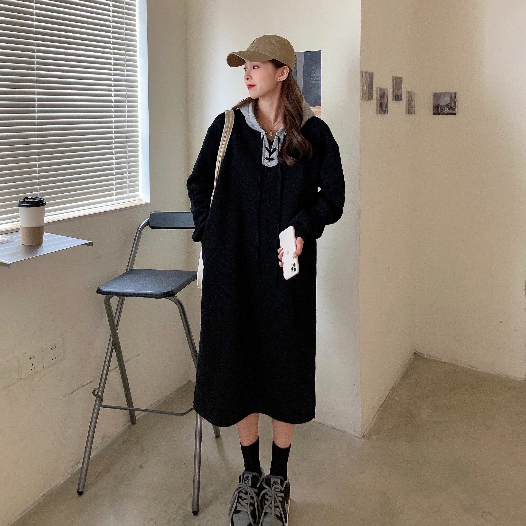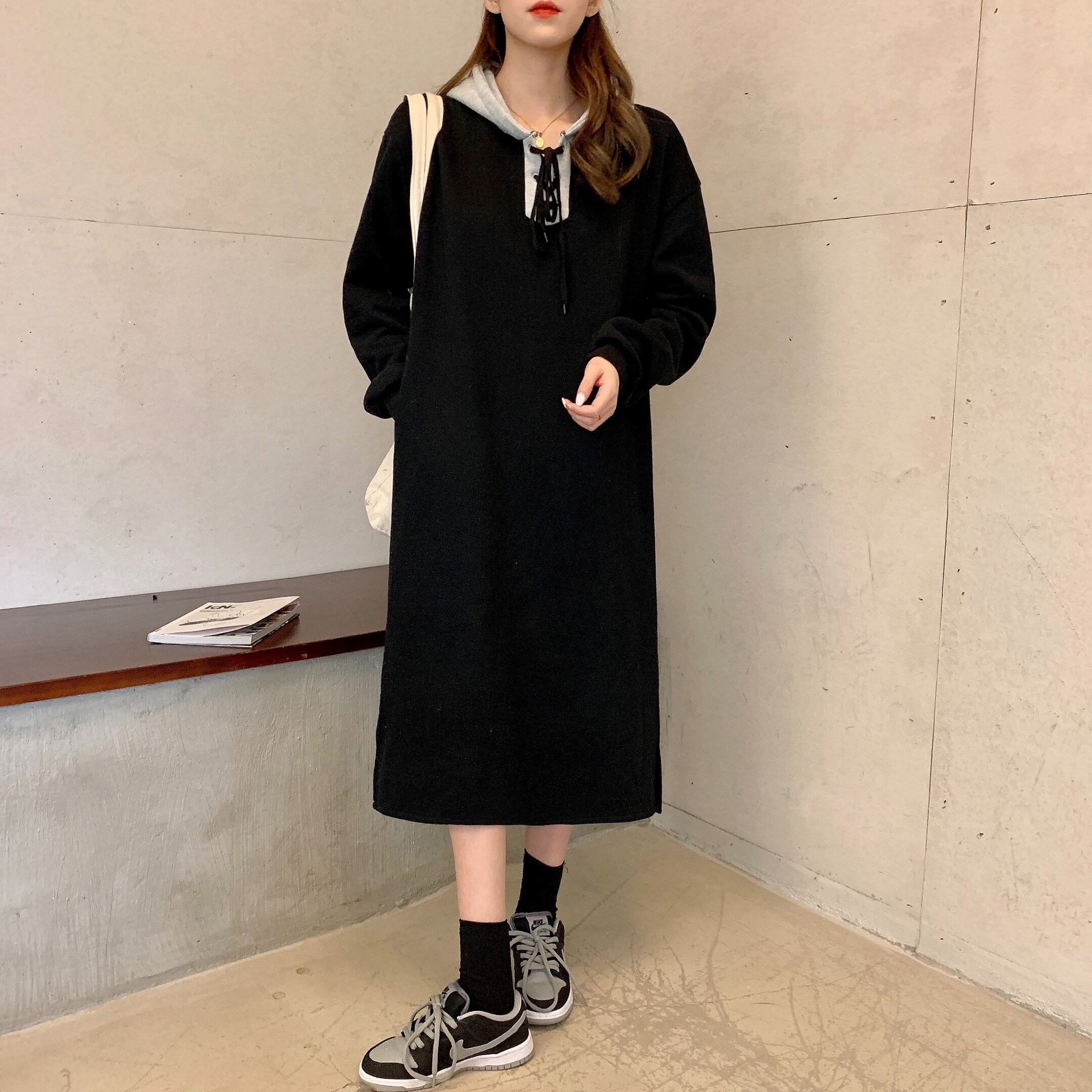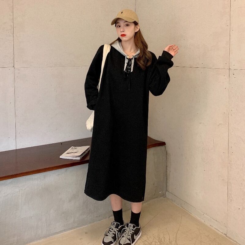 ベルベットドレス レディースオータムウィンターフードロングセーター 長袖 秋物 冬物 YY-ファッション49903535474