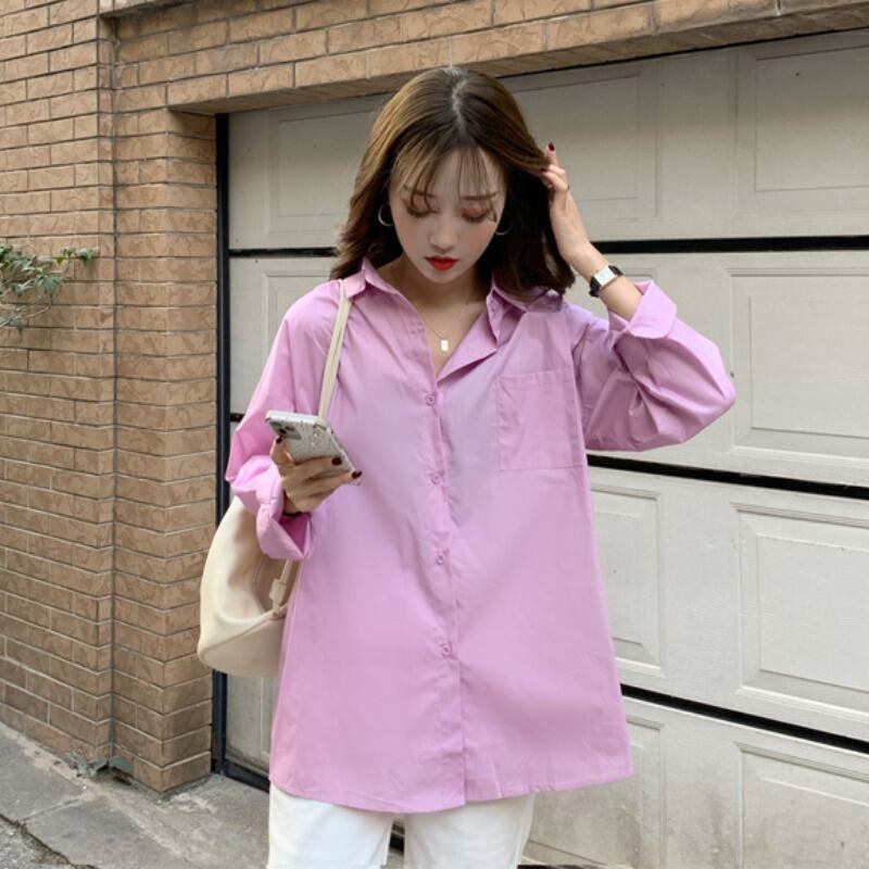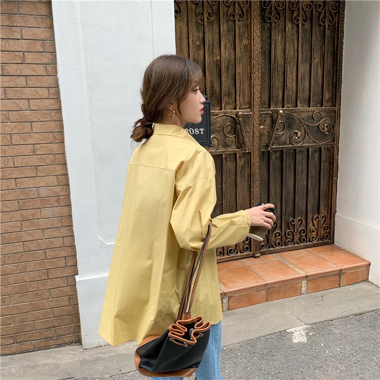 スプリングルーズシャツ ジャケット ソリッド カラー ロング 春物 ソリッドカラー YY-ファッション85748048197