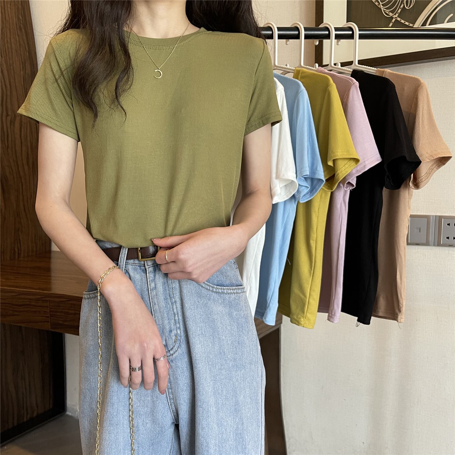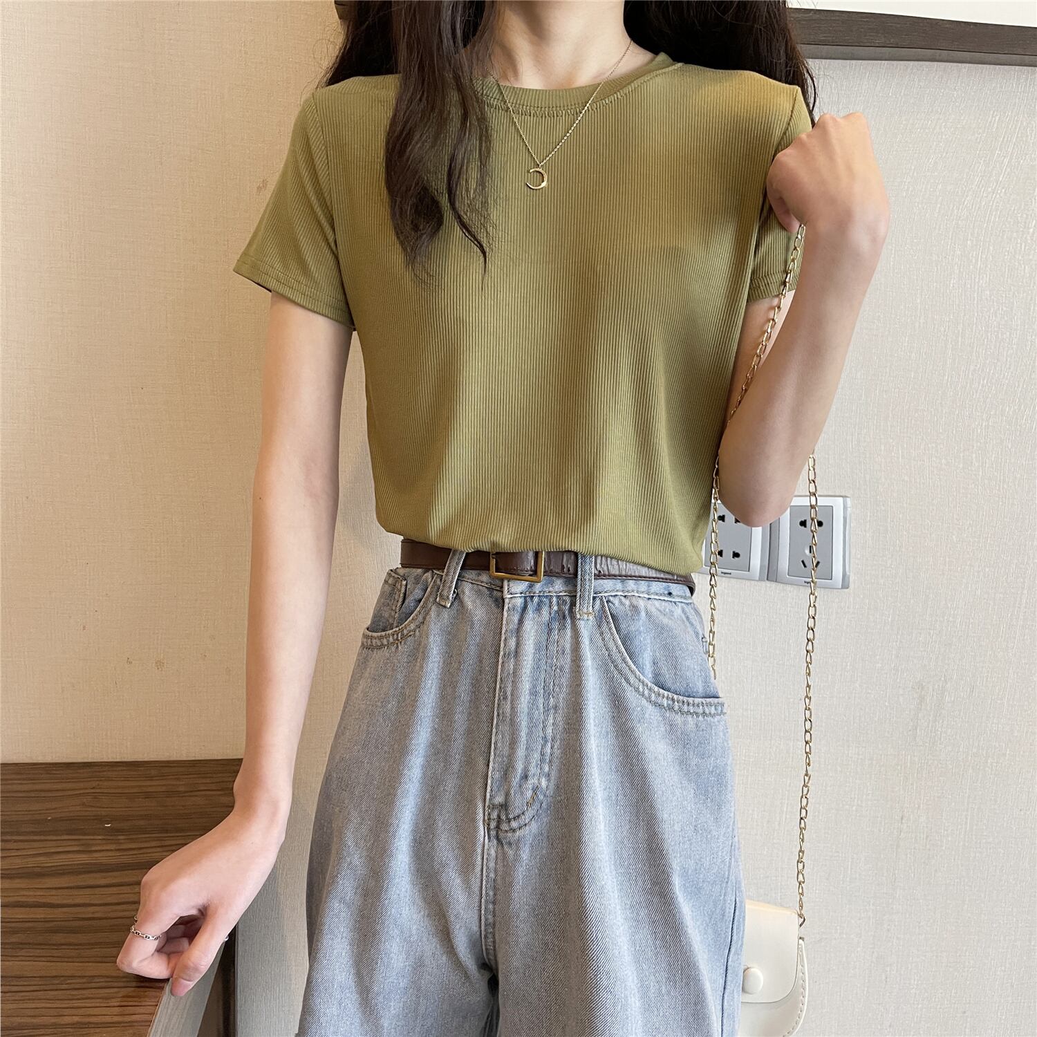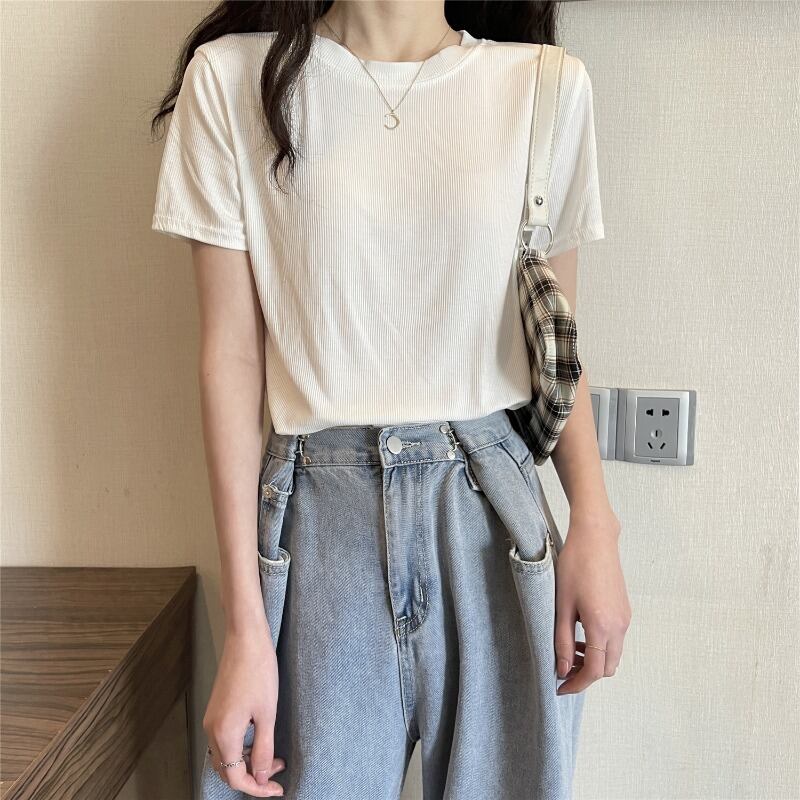 サマーショートホワイトシャツ ラウンドネック半袖スリーブTシャツ ハーフスリーブ 夏物 Oネック YY-ファッション62300508003