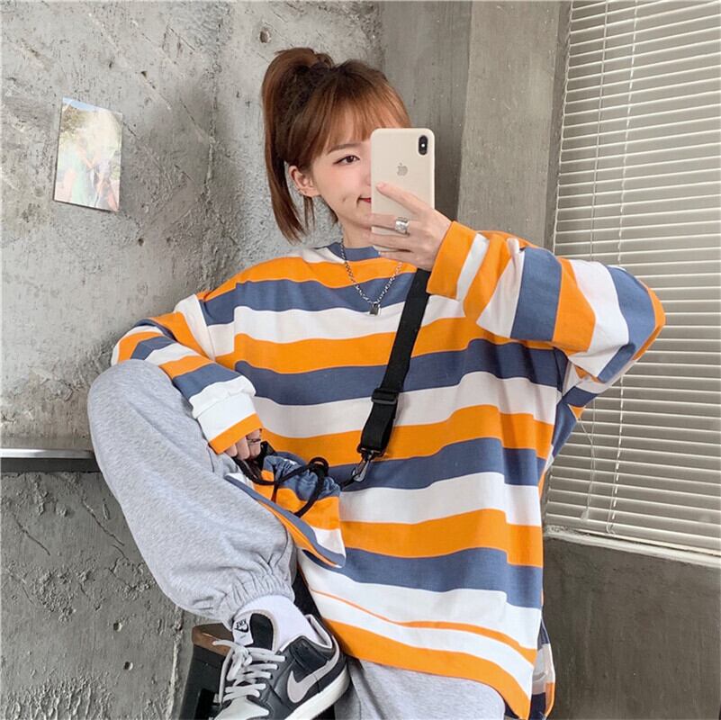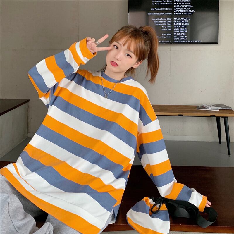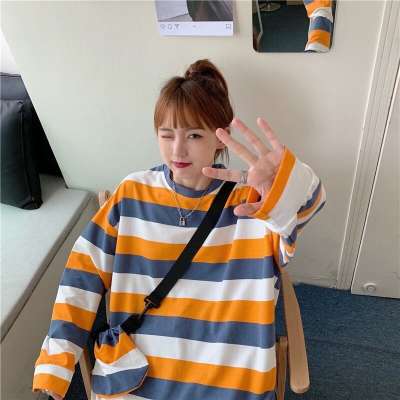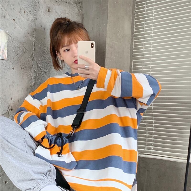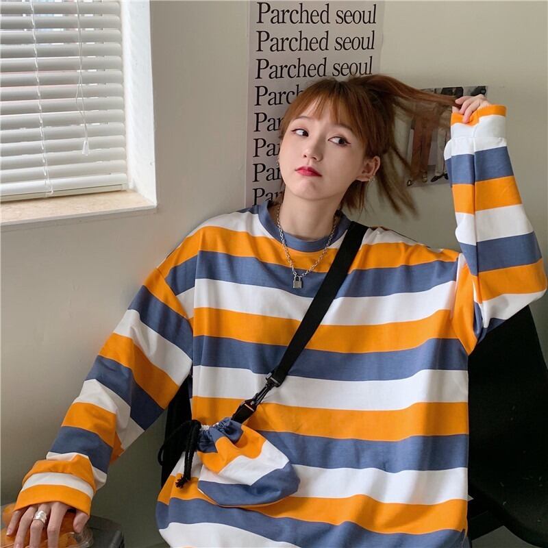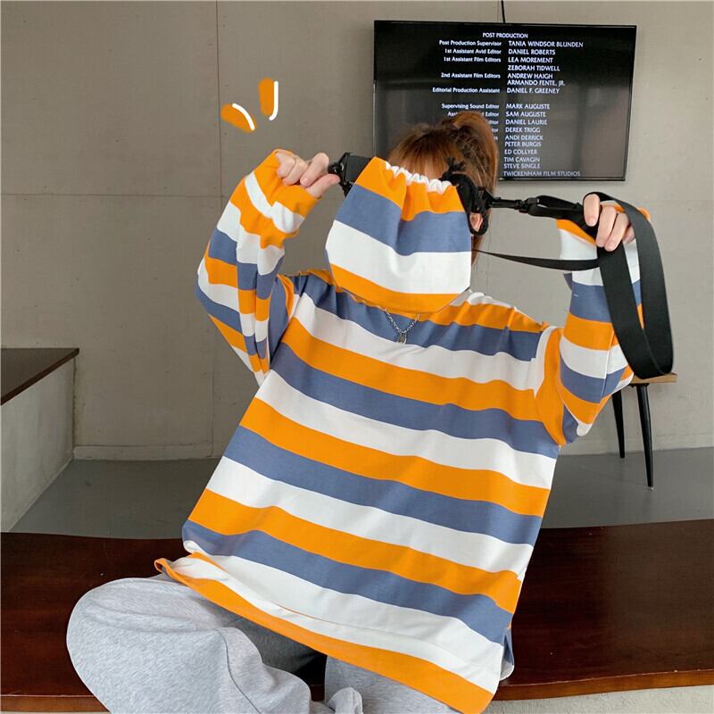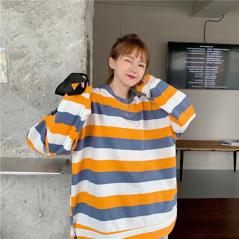 スプリングストライプトップス ラウンドネックプルオーバー ルーズセーター 春物 Oネック YY-ファッション85465145982