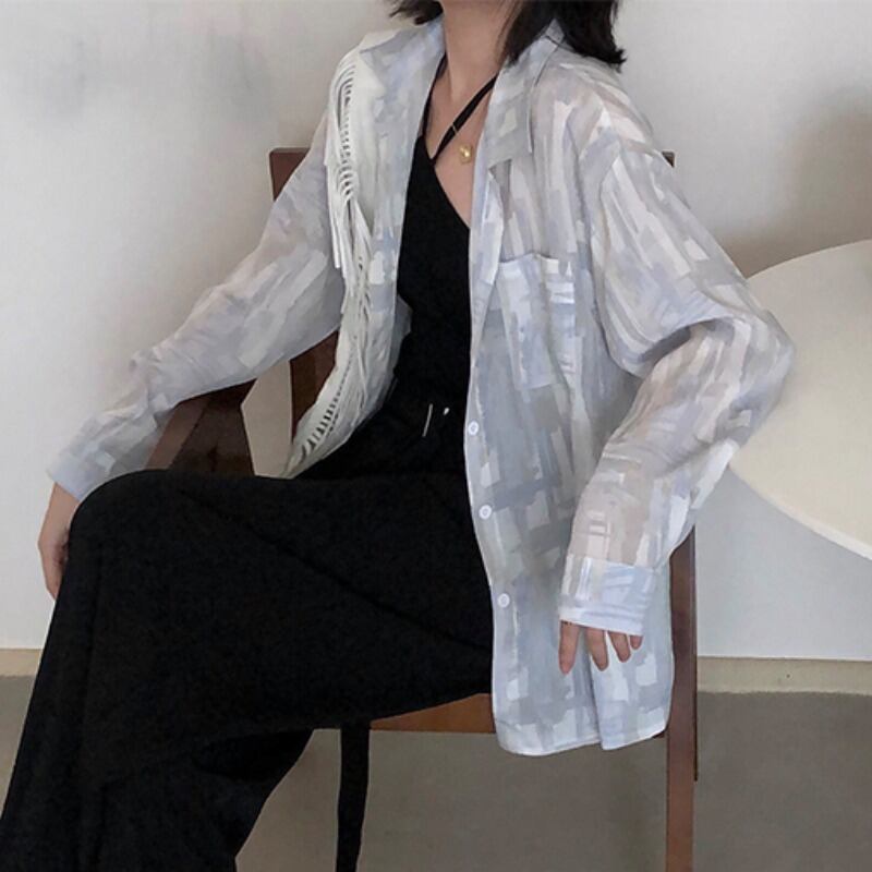 スタンダードシャツ トップス スプリングルーズ薄手 ロング レトロ 春物 YY-ファッション12926894165