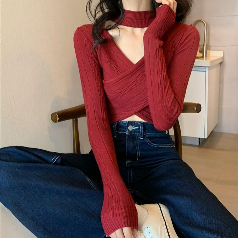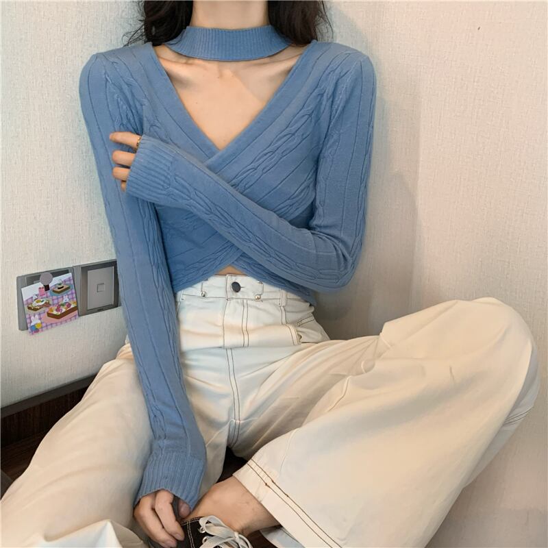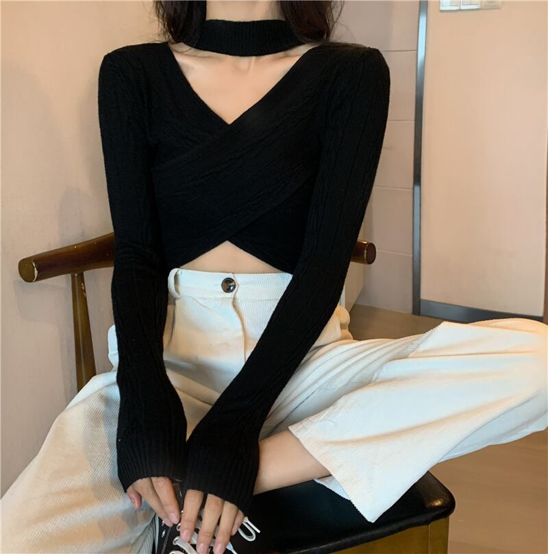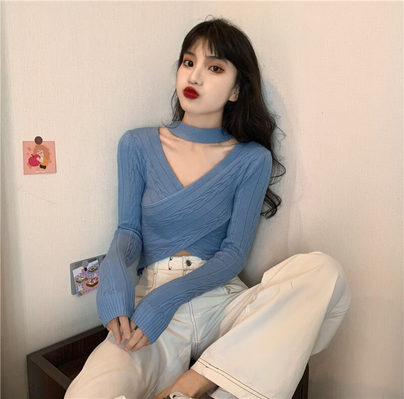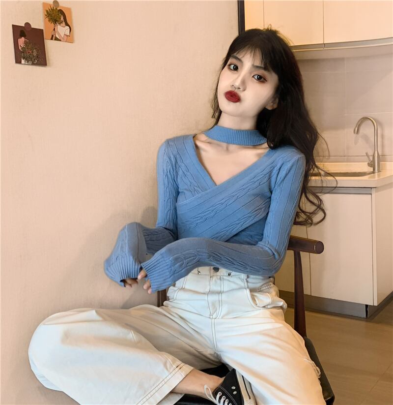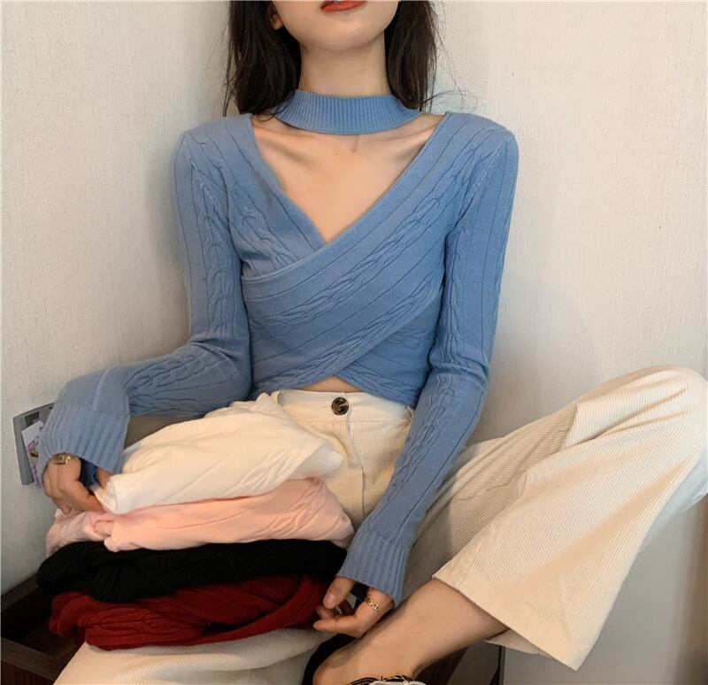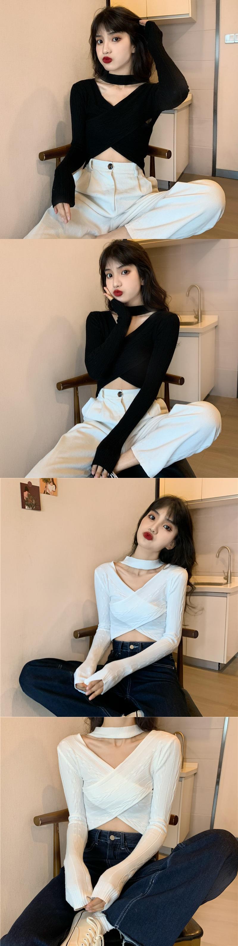 ホルターニット スプリングスリムクロスVネックシャツ 春物 YY-ファッション93468333977