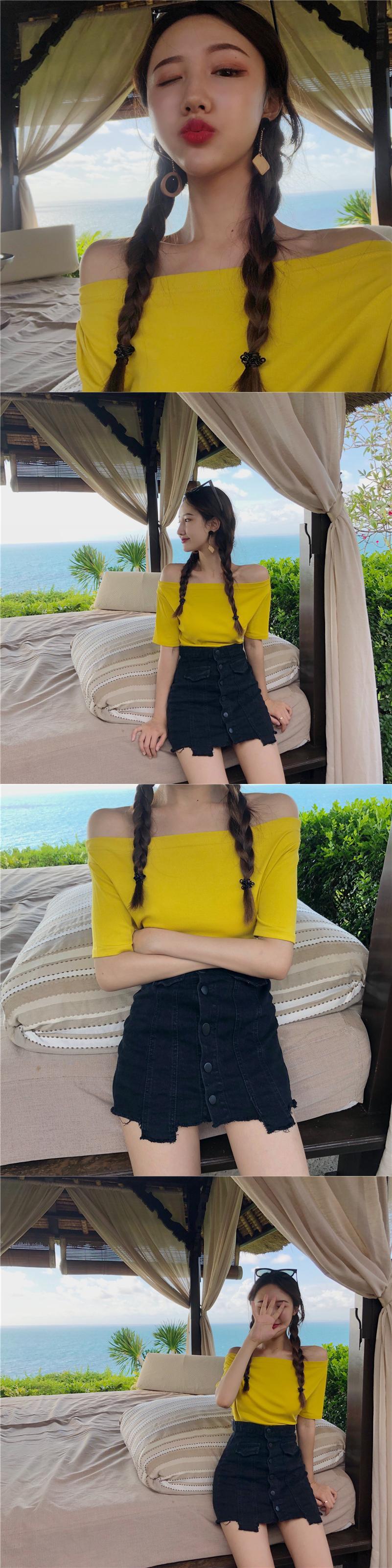 オータム薄手ルーズワンショルダーソリッド カラーTシャツ トップス 秋物 オフショルダー ソリッドカラー YY-ファッション26020698522