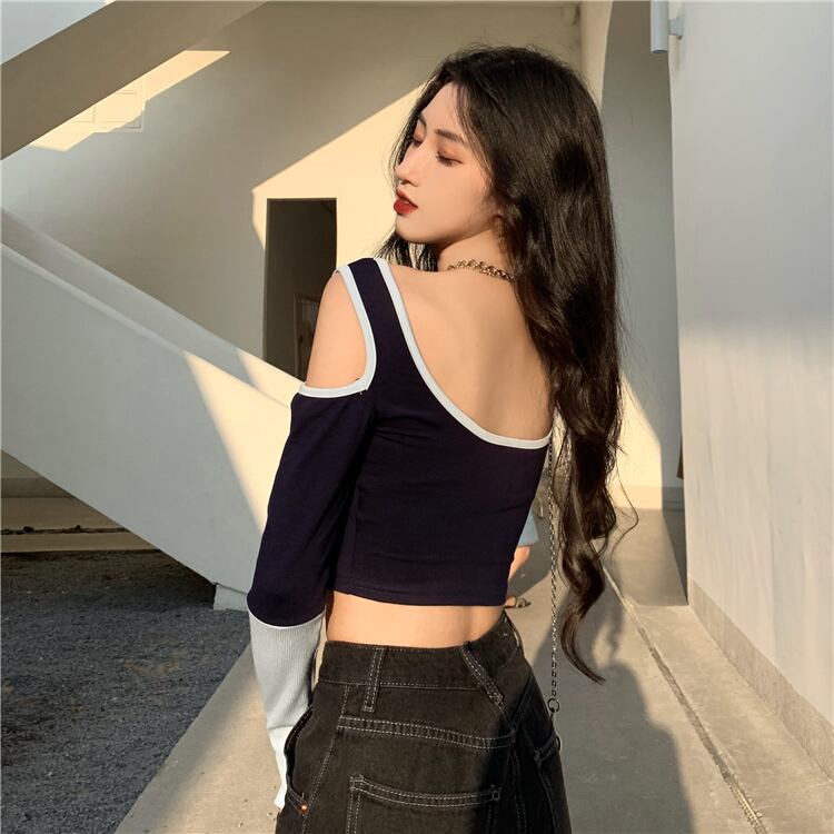 Tシャツ レディーススプリングショートレッドトップス ロング 春物 オフショルダー YY-ファッション21115910114