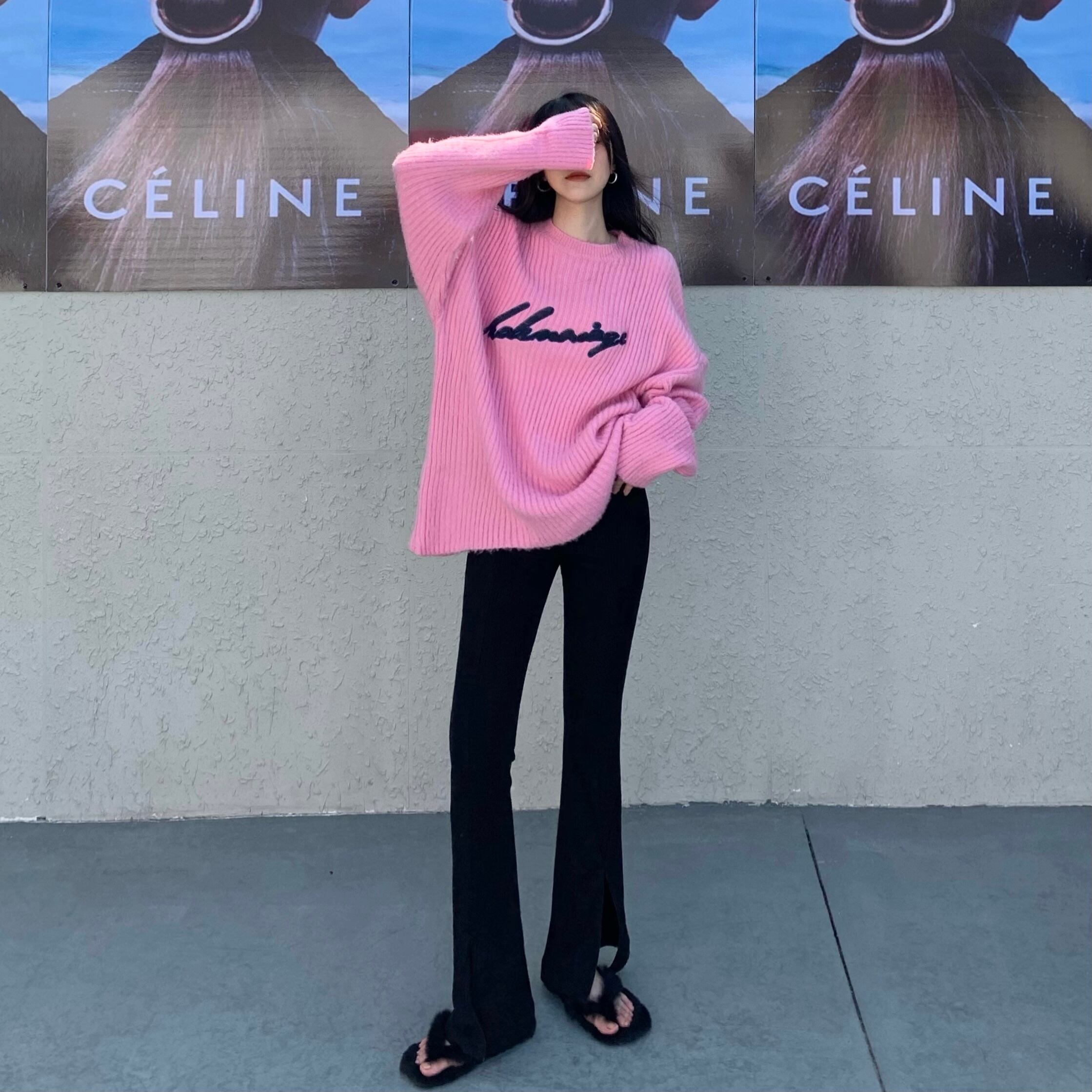 セーター ルーズニットスプリングスタンダードトップス ピンク レッド レトロ 春物 YY-ファッション92961368960