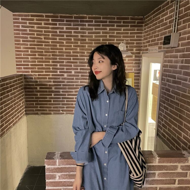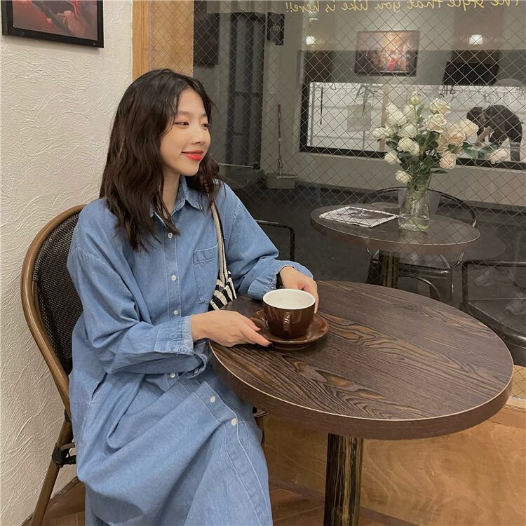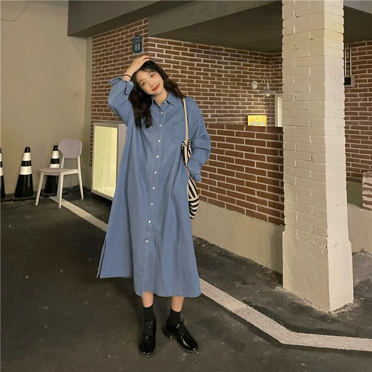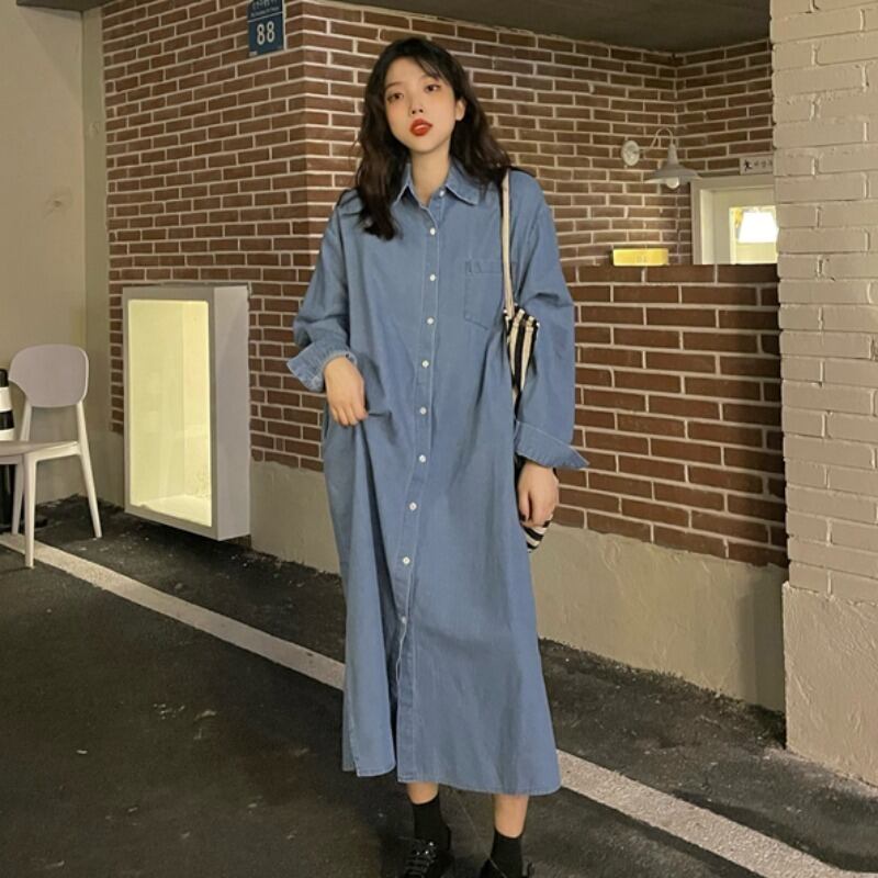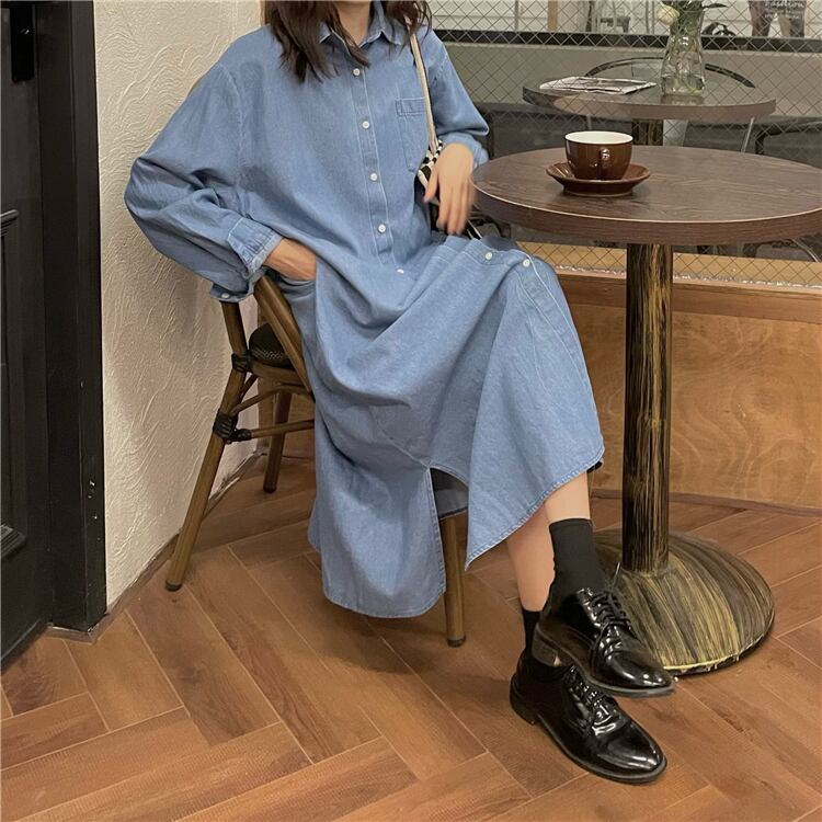 ドレス スプリングオータムブルーシャツ スカート カジュアルロング 春物 秋物 YY-ファッション70561642676