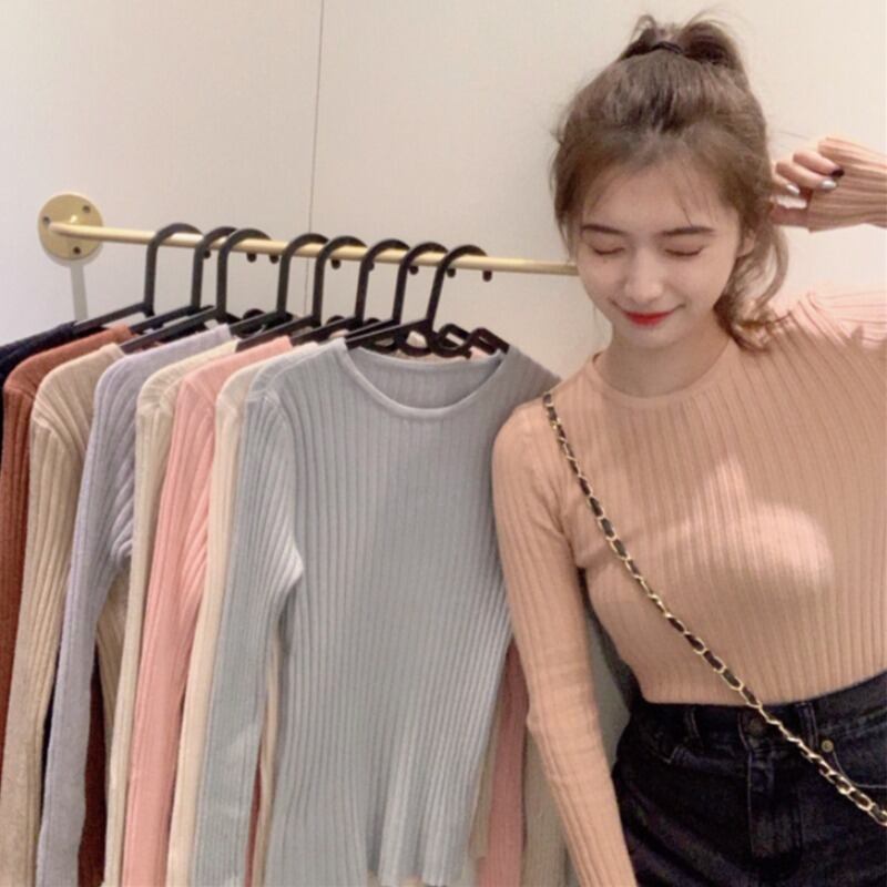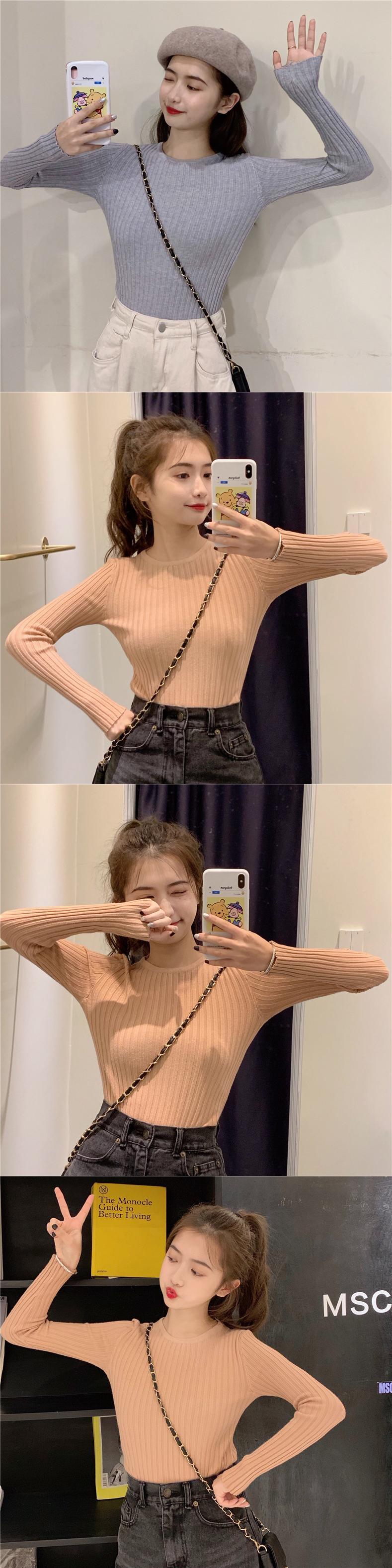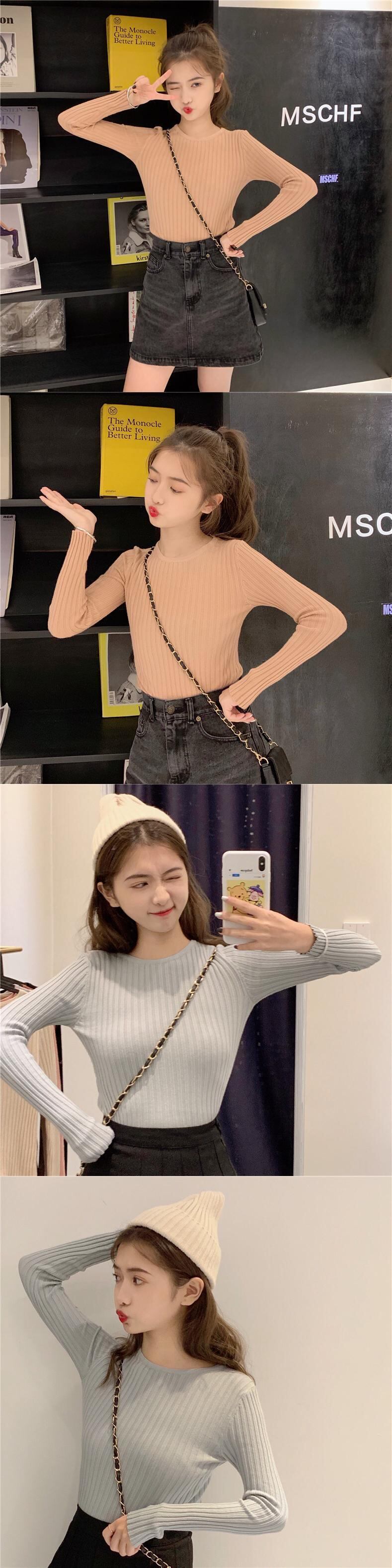 オータムウィンターシャツ スタンダードラウンドネックソリッド カラーニットセーター トップス ロング レトロ 秋物 冬物 Oネック ソリッドカラー YY-ファッション40503375593