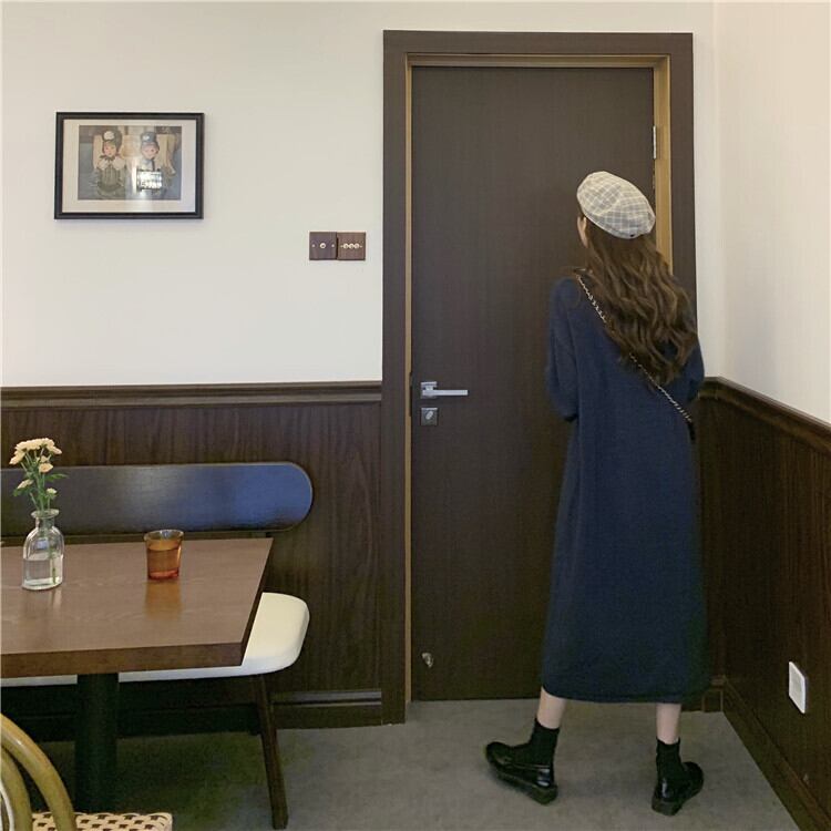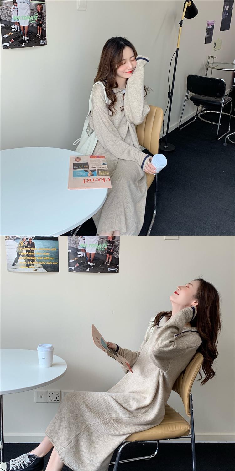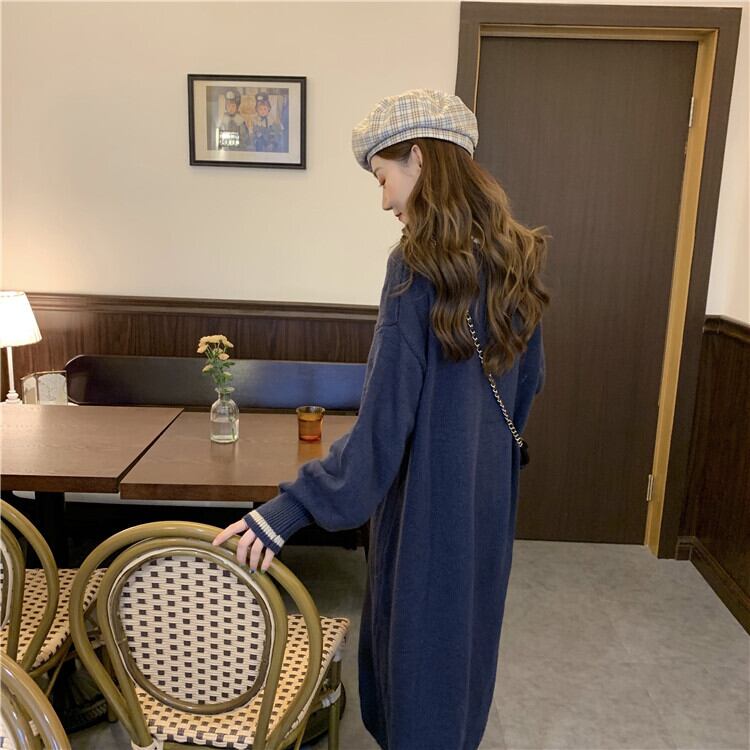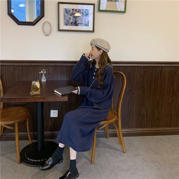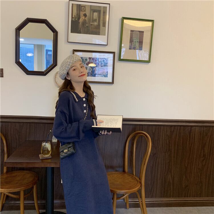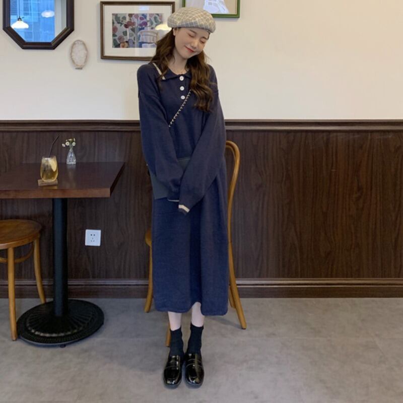 ニットドレス オータムウィンターロングスカート ルーズカラー長袖スリーブレッド 秋物 冬物 YY-ファッション15281814634