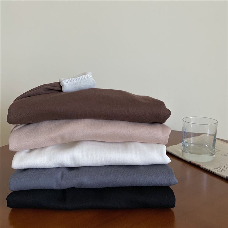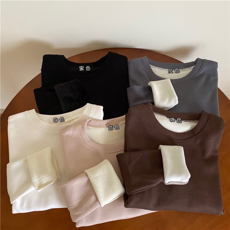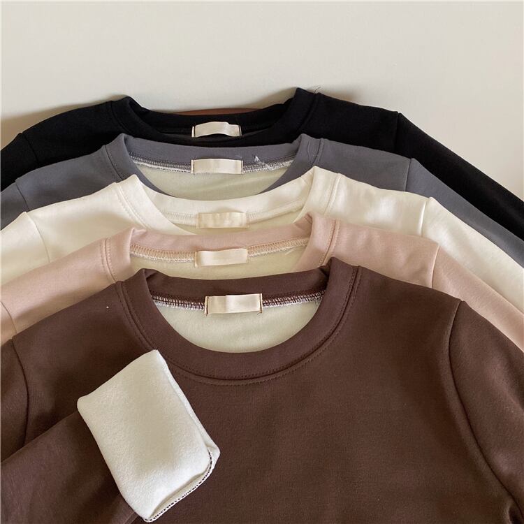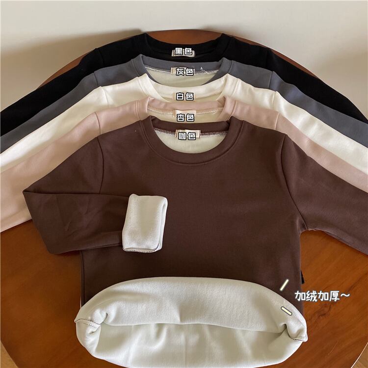 Tシャツ シャツ オータムウィンターベルベットラウンドネックトップス ブラック ロング 秋物 冬物 Oネック YY-ファッション1839312606