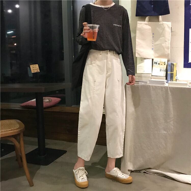 パンツ スプリングルーズ薄手ハイウェストウェストジーンズ カジュアル 春物 YY-ファッション34457435136