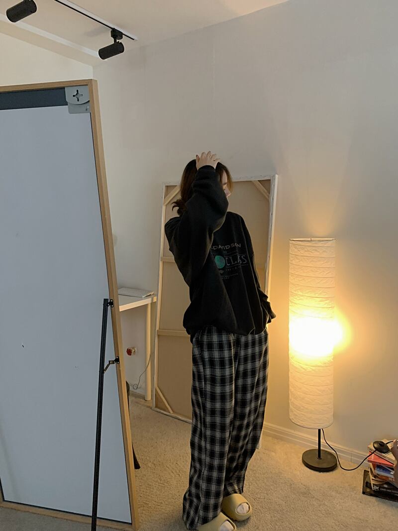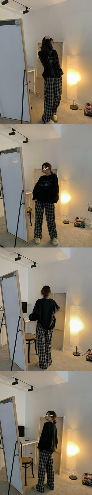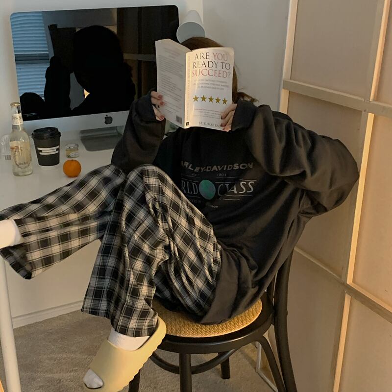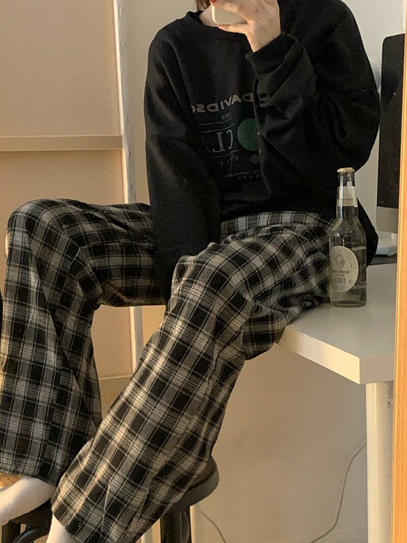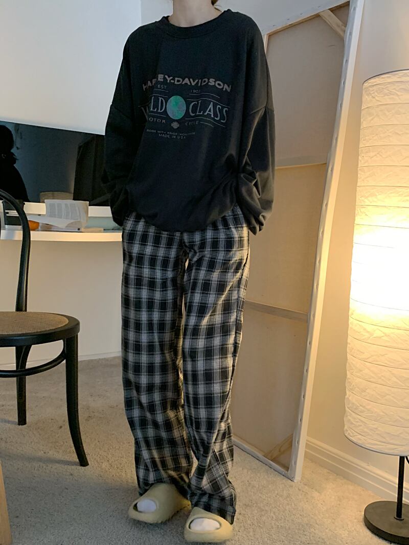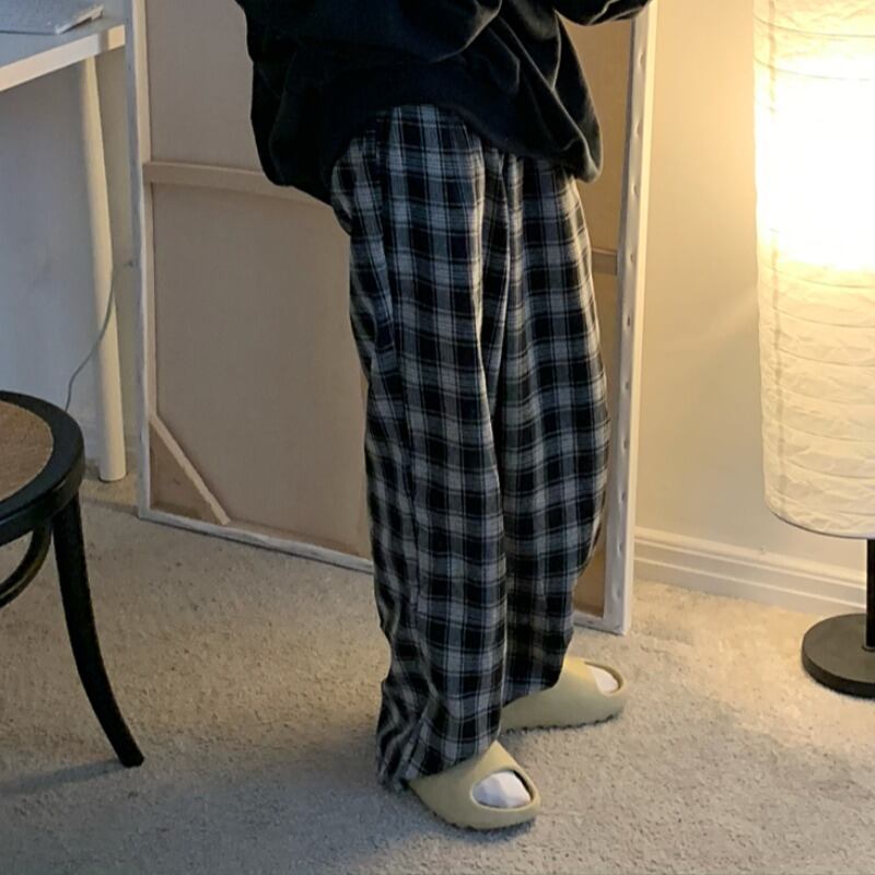 格子柄パンツ スプリングスタンダードウェスト薄手ワイドレッグルーズロング レトロ 春物 ワイドパンツ YY-ファッション45848345556