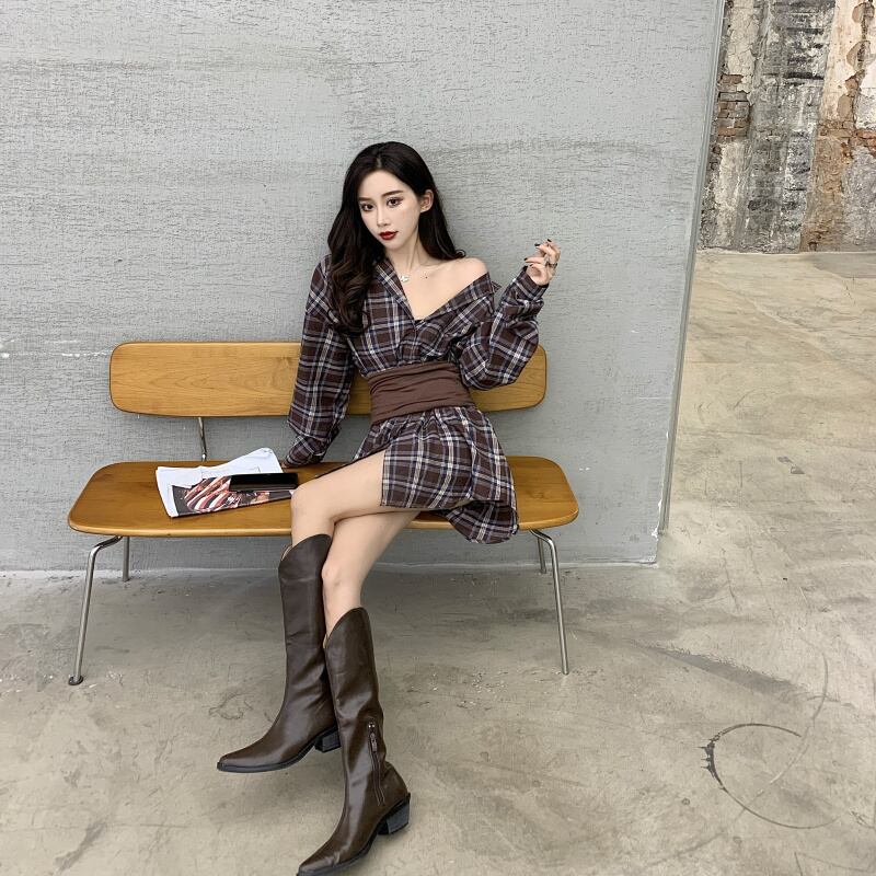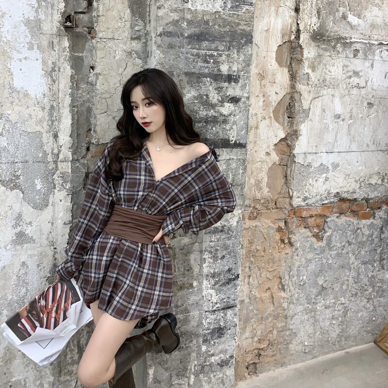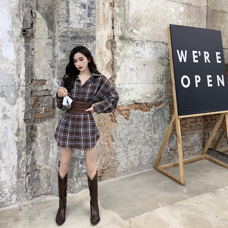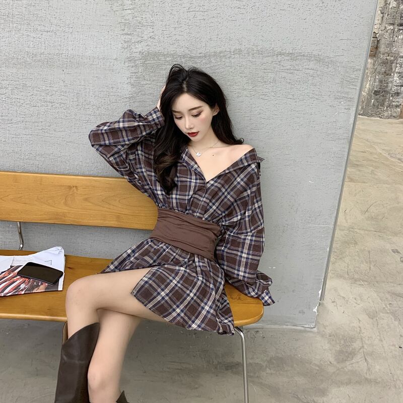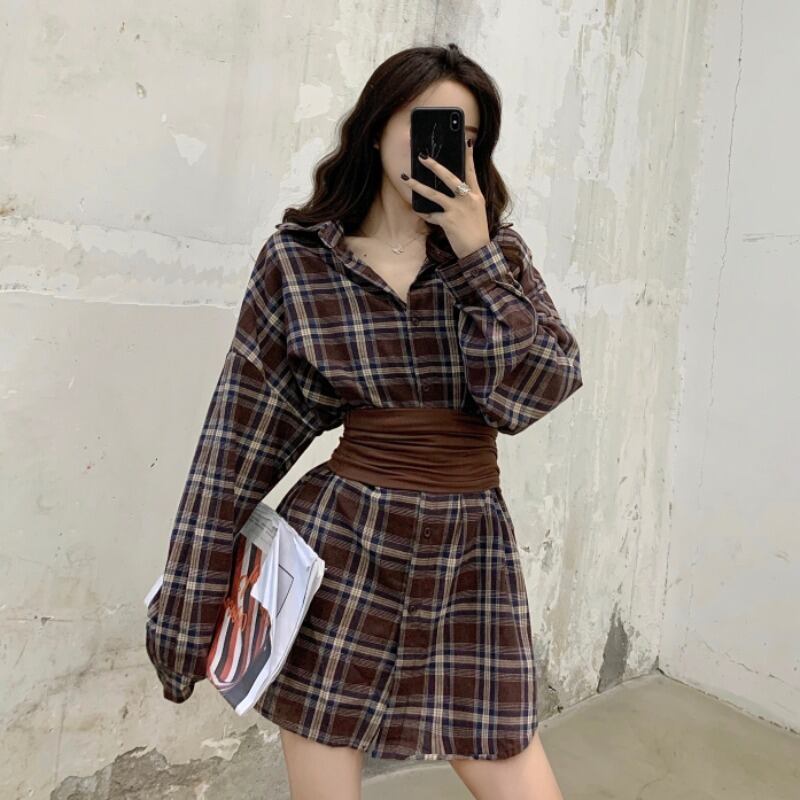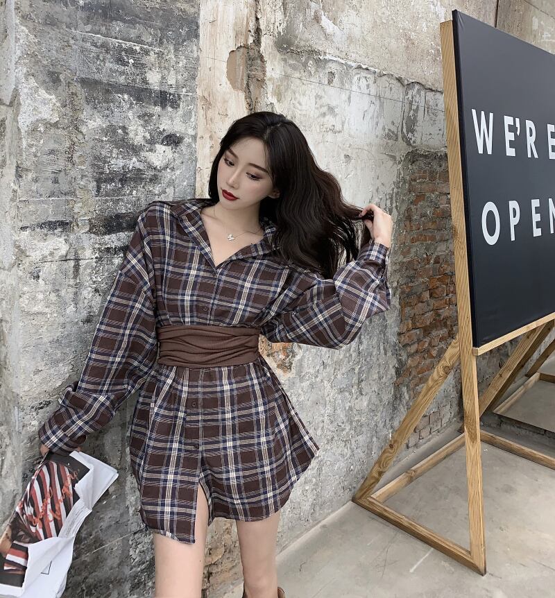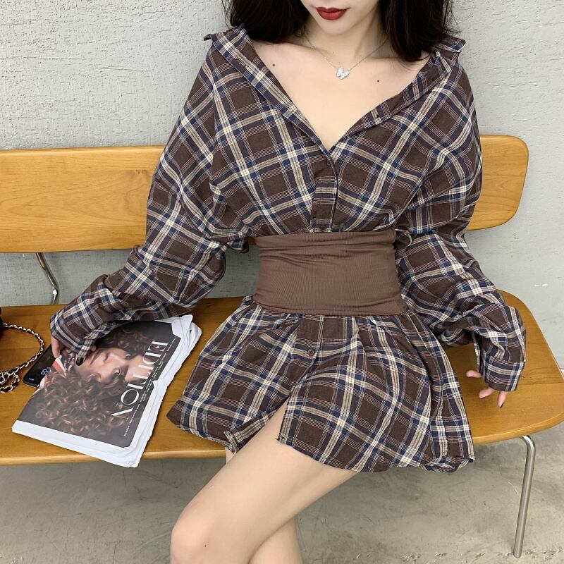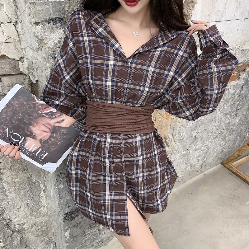 格子柄スプリングトップス ロング ブラウス 春物 YY-ファッション13302756007