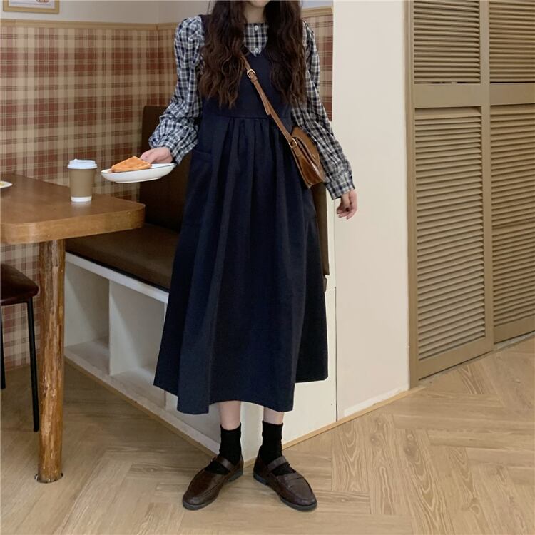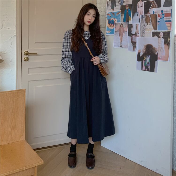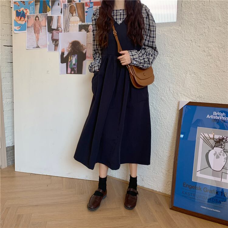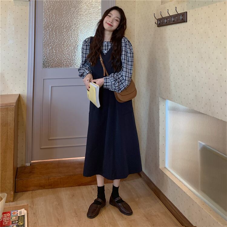 色:コーヒートップ,ブルートップ,コーヒーカラーストラップドレス,ブルーストラップスカート
