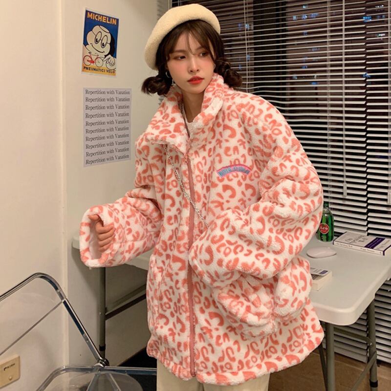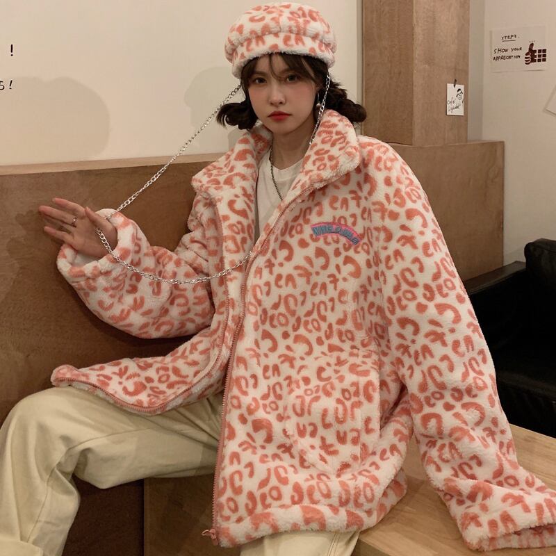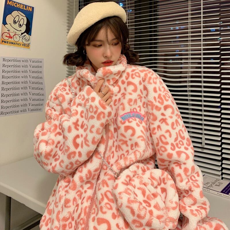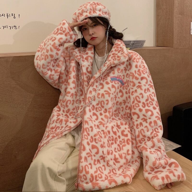 レオパードプリント柄ベルベットジャケット レッドウィンタールーズカラー ピンク コットン 冬物 YY-ファッション19166322979