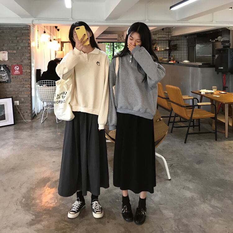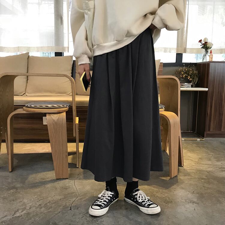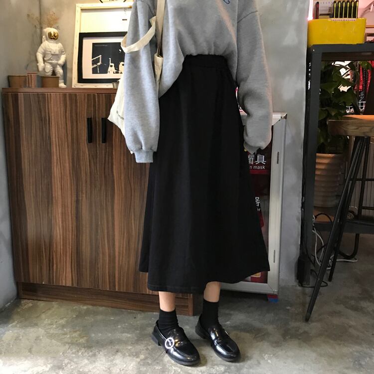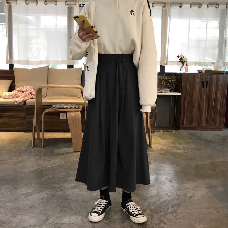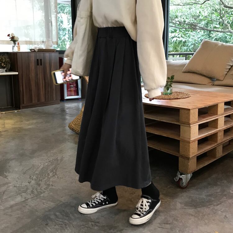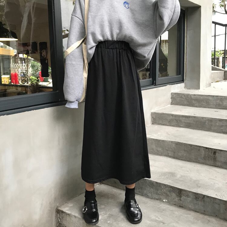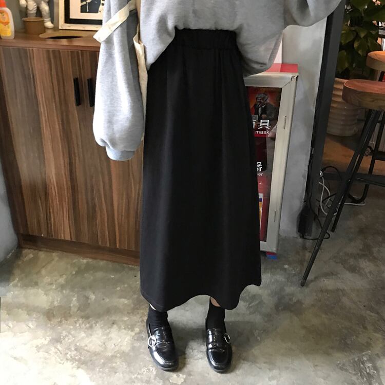 スカート オータムハイウェストウェストAラインロング薄手ブラックウィンター 秋物 冬物 YY-ファッション4625472809