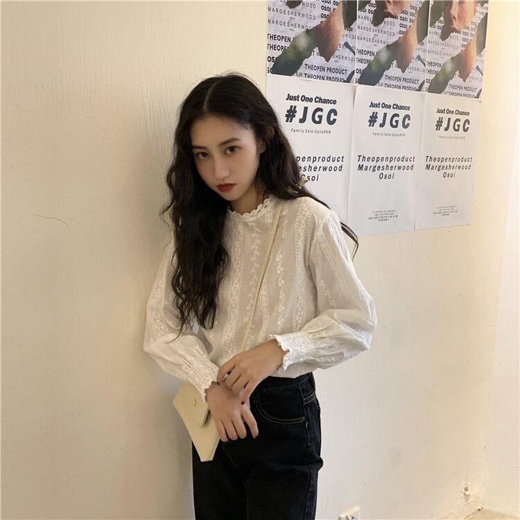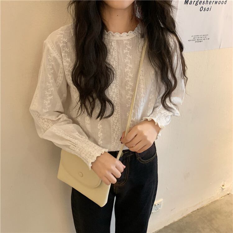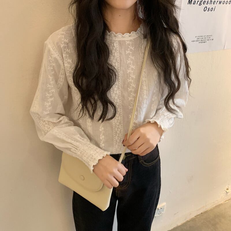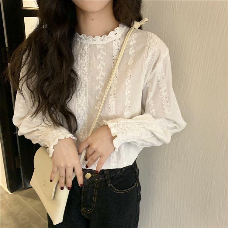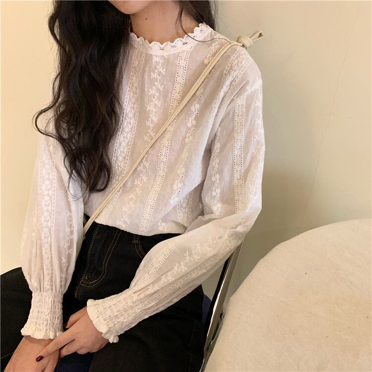 オータムスリーブFlowerデザイン レースシャツ トップス レディース ランタンスリーブ 秋物 フラワーデザイン YY-ファッション54186831140