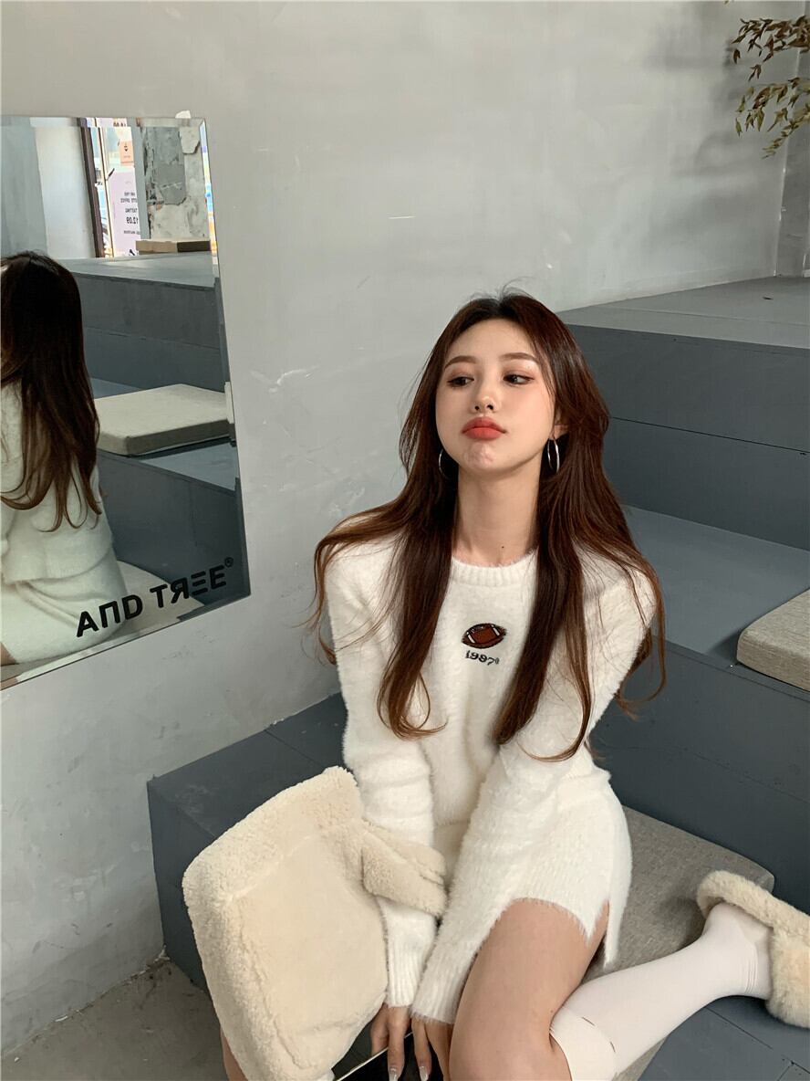 ニットシャツ ホワイトスタイルショートスリムフィットセーター スプリングトップス 春物 YY-ファッション57576293707