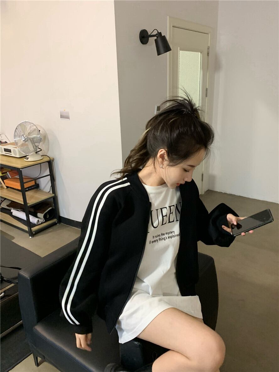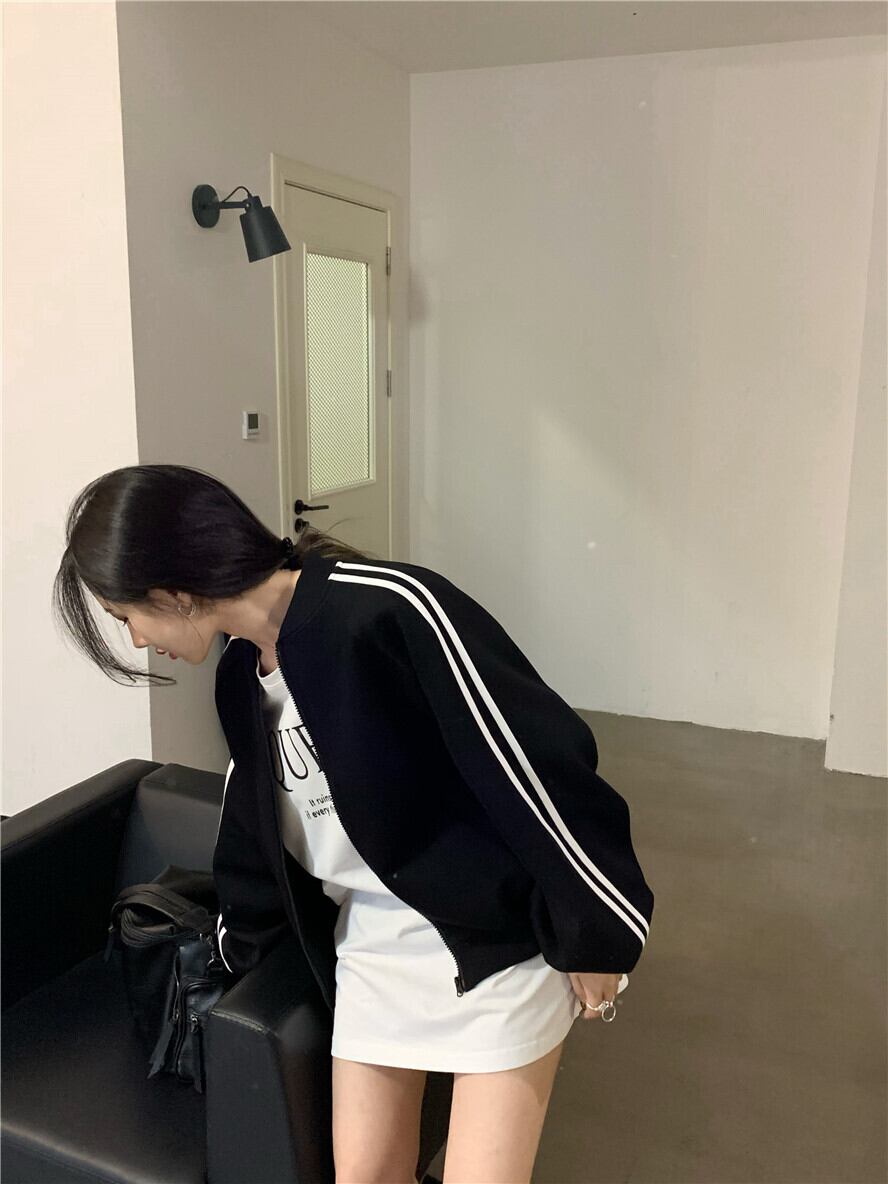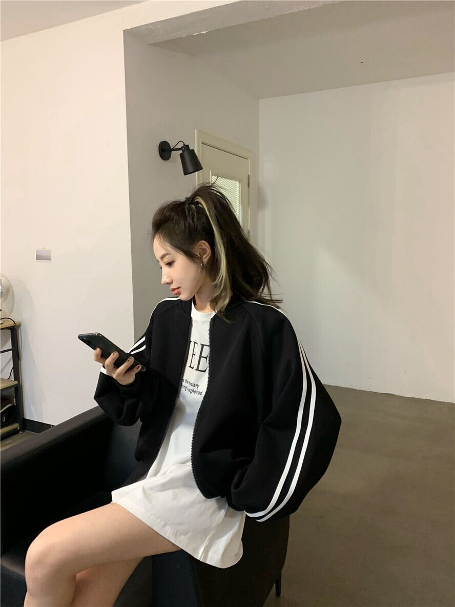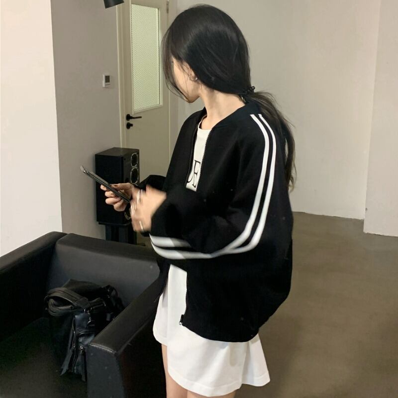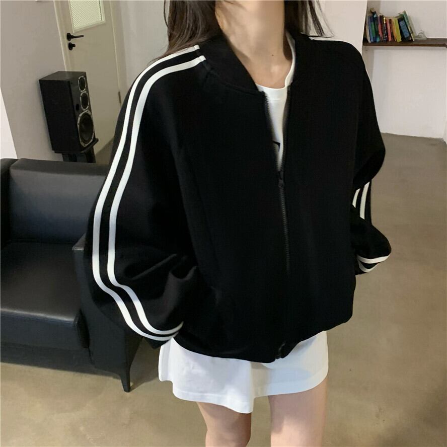 ショートカーディガンジャケット スプリングブラックルーズジッパートップス 春物 YY-ファッション60703210804