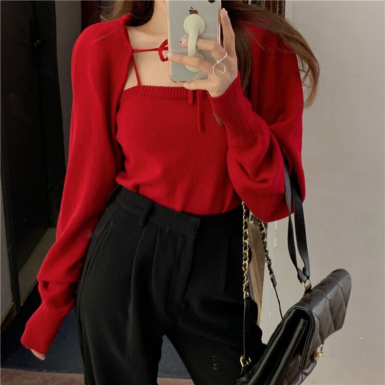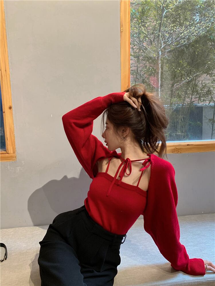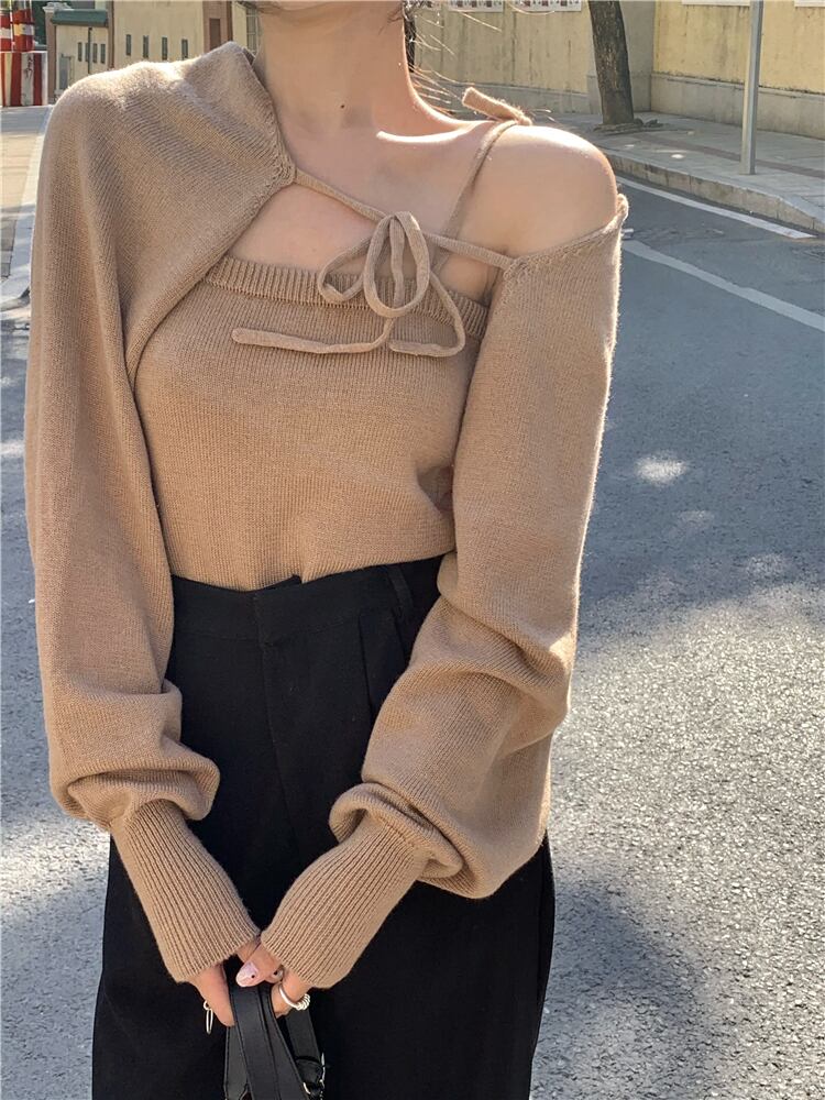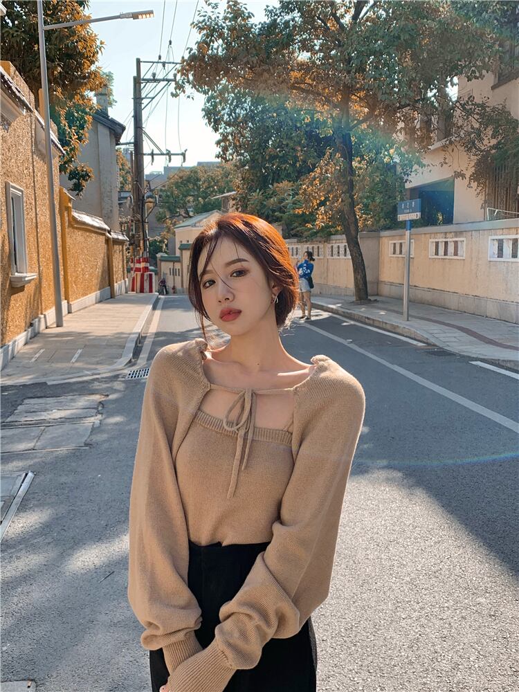 スタンダードニットカーディガンスプリングショートトップス レトロ 春物 YY-ファッション24747902804