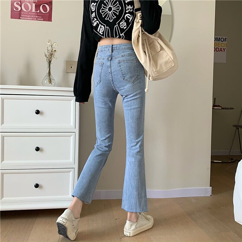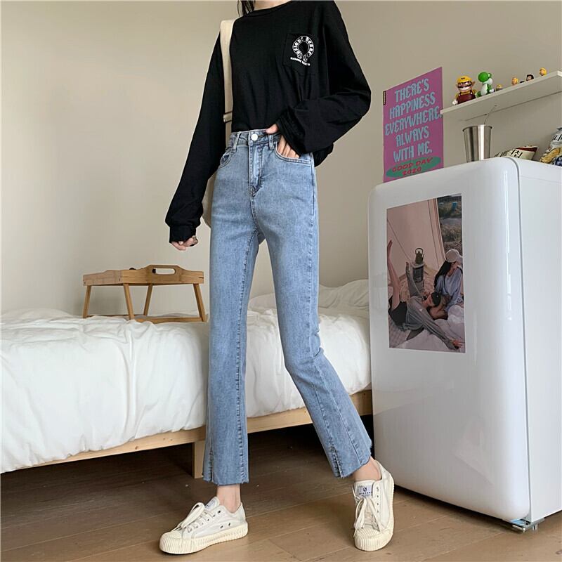 カジュアルジーンズ スプリングオータムハイウェストウェストスリムパンツ レッド 春物 秋物 YY-ファッション59441930357