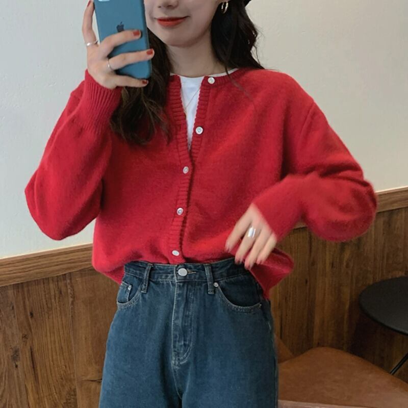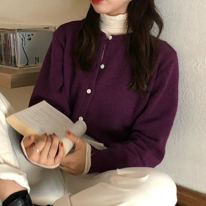 スプリングニットカーディガンショートスリムカラーセーター トップス レディース ロング 春物 ピュア YY-ファッション54875038089
