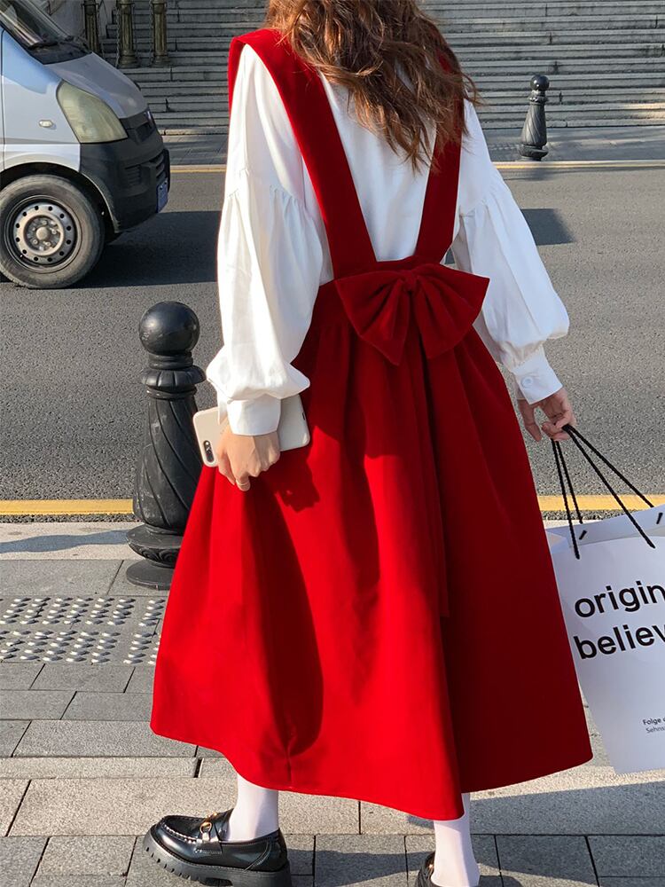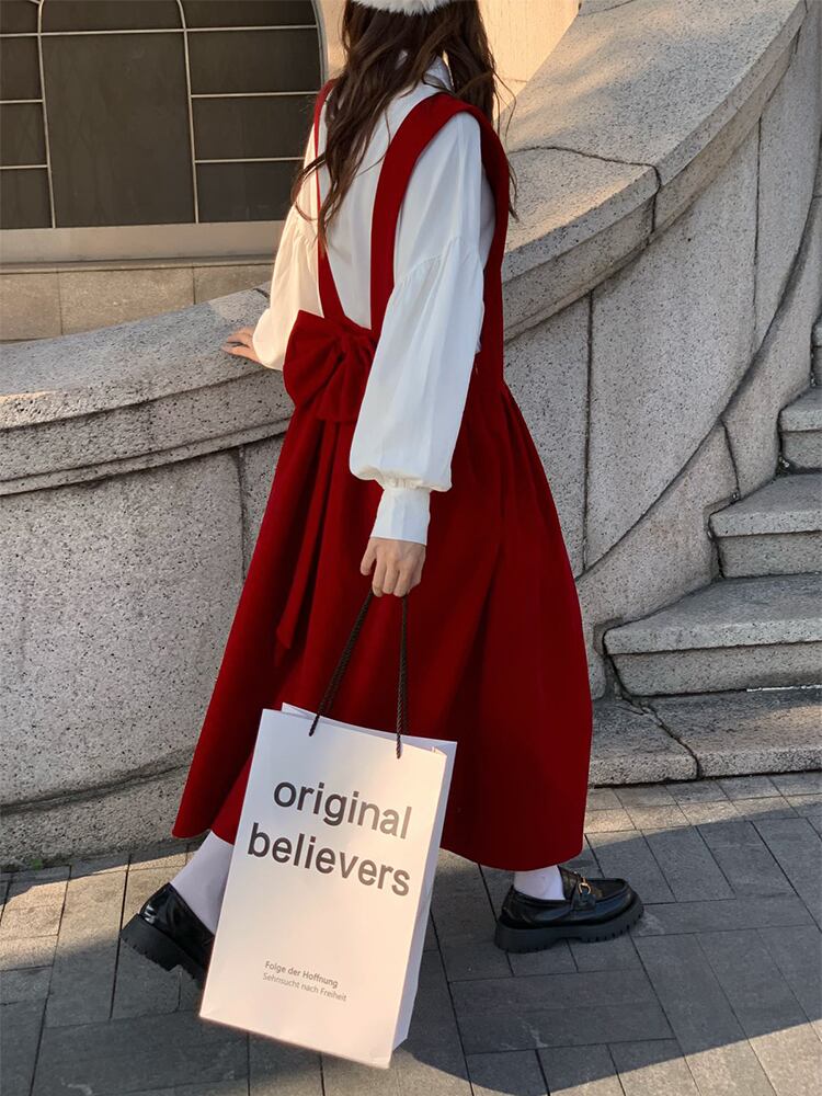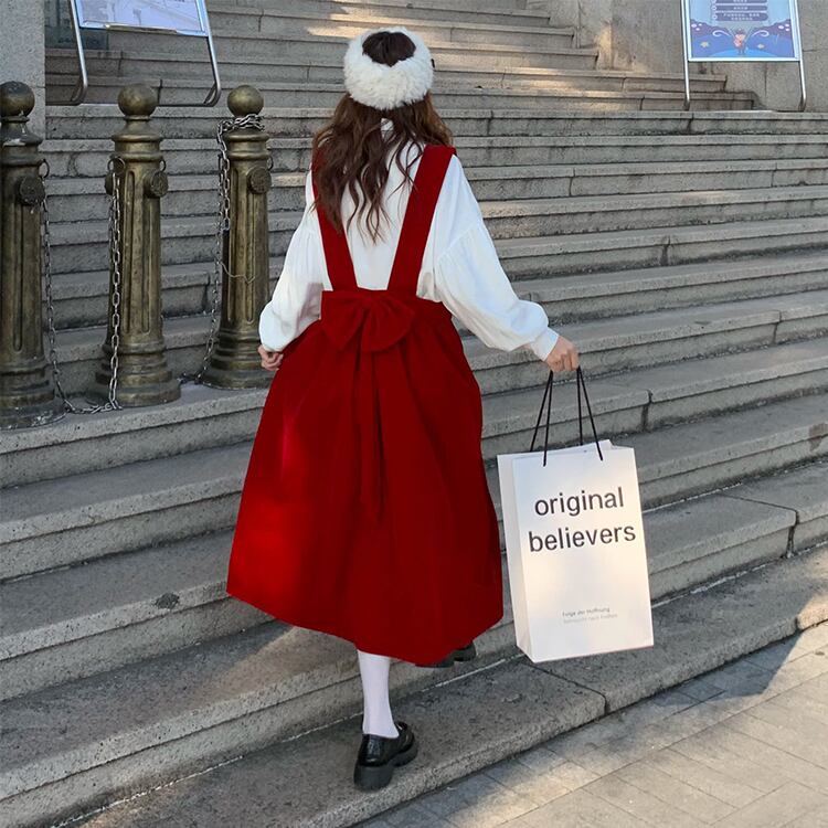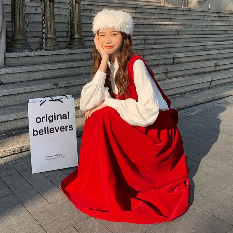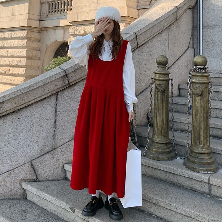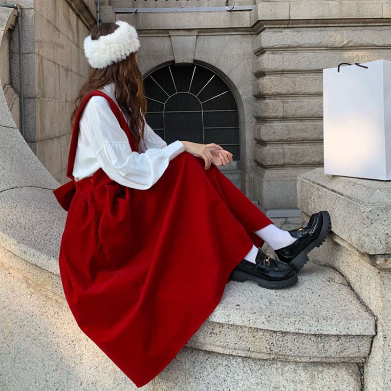 レッドドレス オータムウィンタースタンダードスカート レトロ 秋物 冬物 YY-ファッション91528597011
