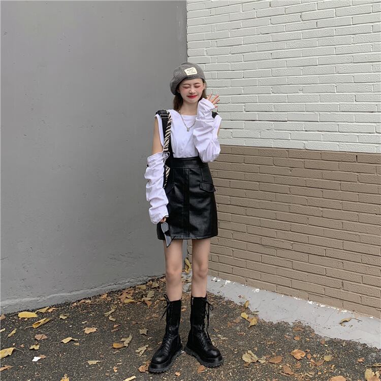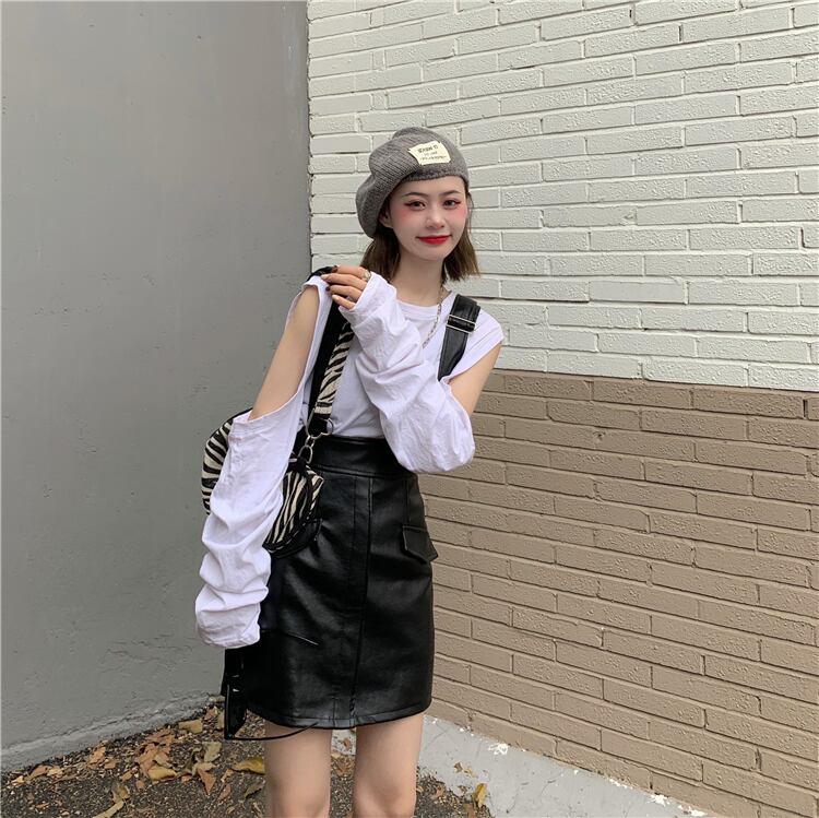 レザースカート オータムウィンターハイウェストウェストスリムショートAライン 秋物 冬物 YY-ファッション14814105962