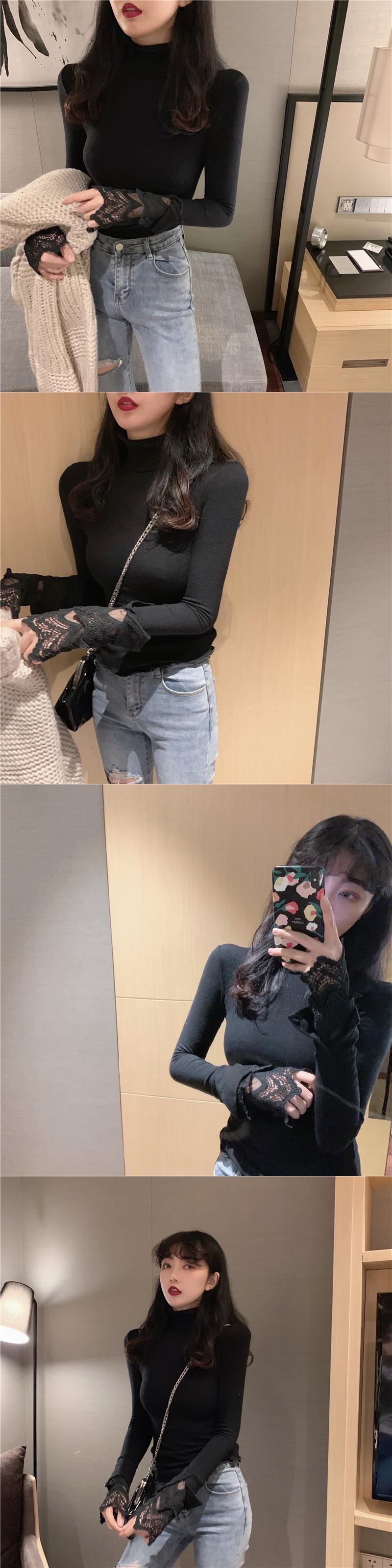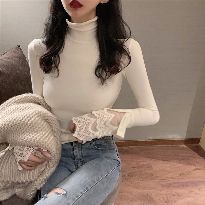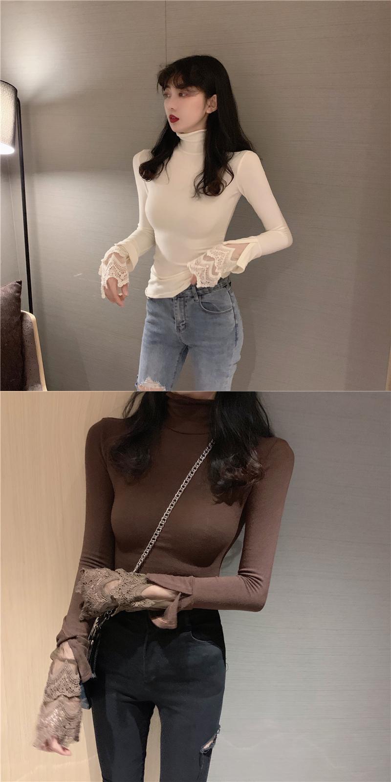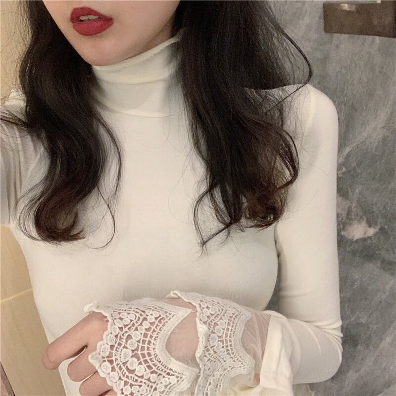 オータムウィンタースリムTシャツ シャツ スタイルホワイトレース ロング コットン 秋物 冬物 YY-ファッション82198195017