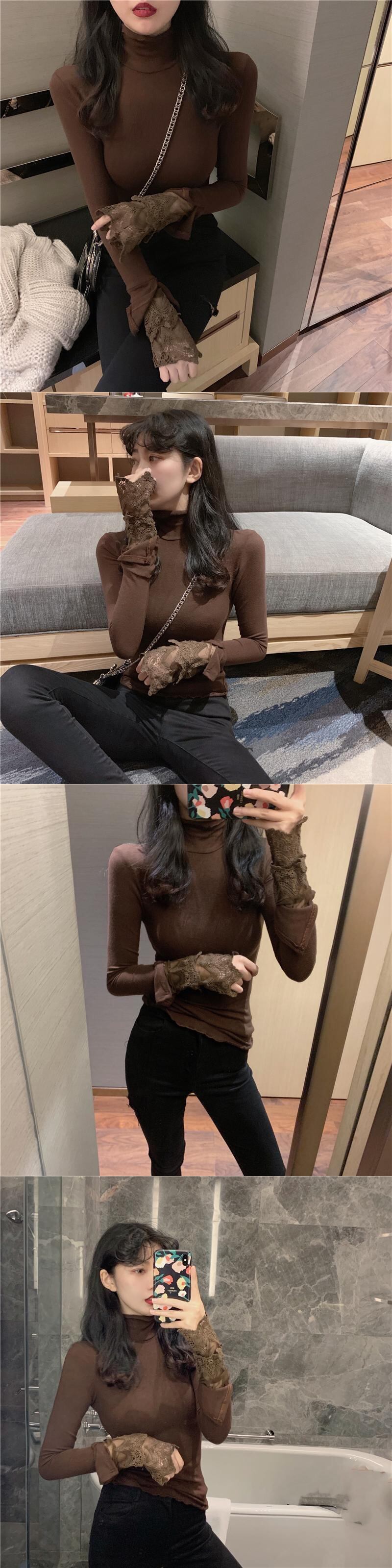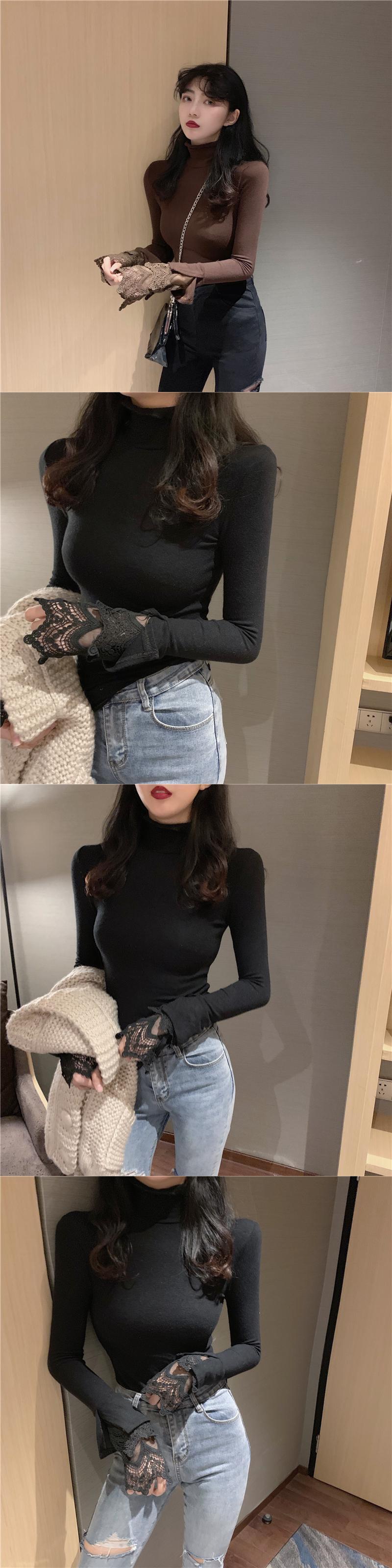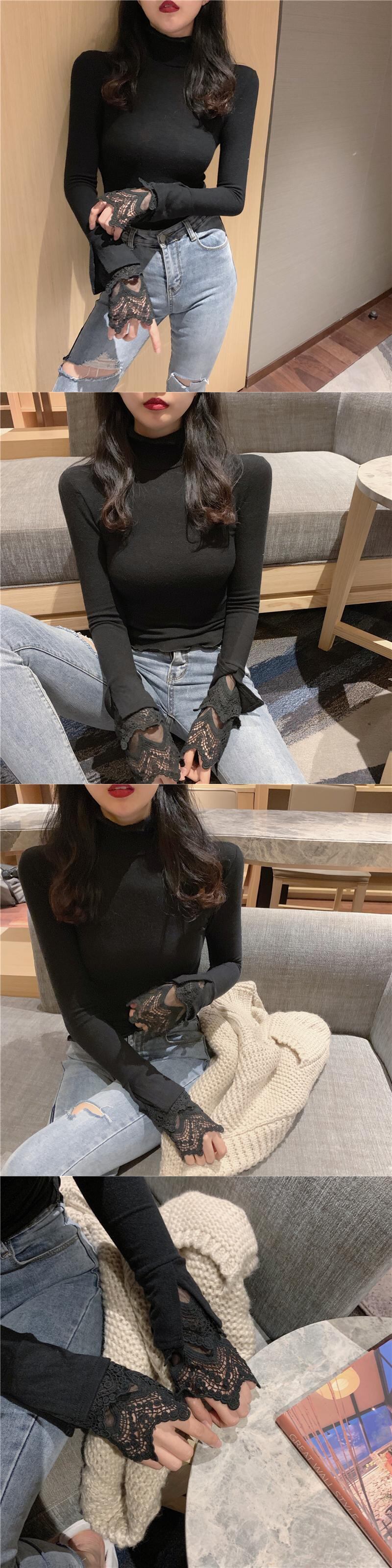 オータムウィンタースリムTシャツ シャツ スタイルホワイトレース ロング コットン 秋物 冬物 YY-ファッション82198195017