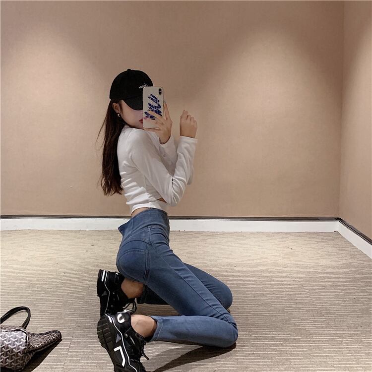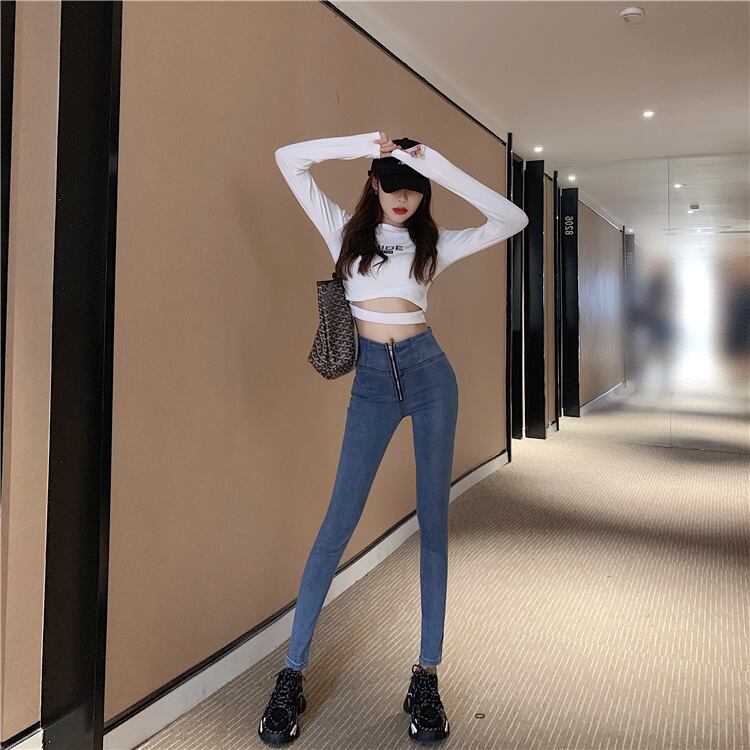 ジッパーハイウェストウェストスリムジーンズ パンツ オータムロング 秋物 YY-ファッション58940047871