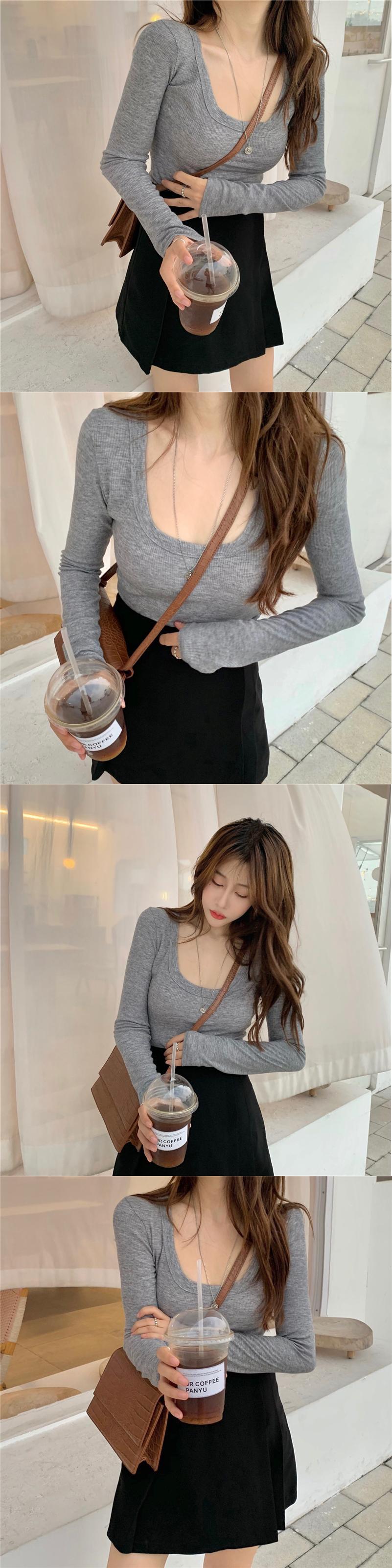 シャツ オータムスリムカラードレス グレーTシャツ ロング 秋物 スクウェア YY-ファッション12869125965