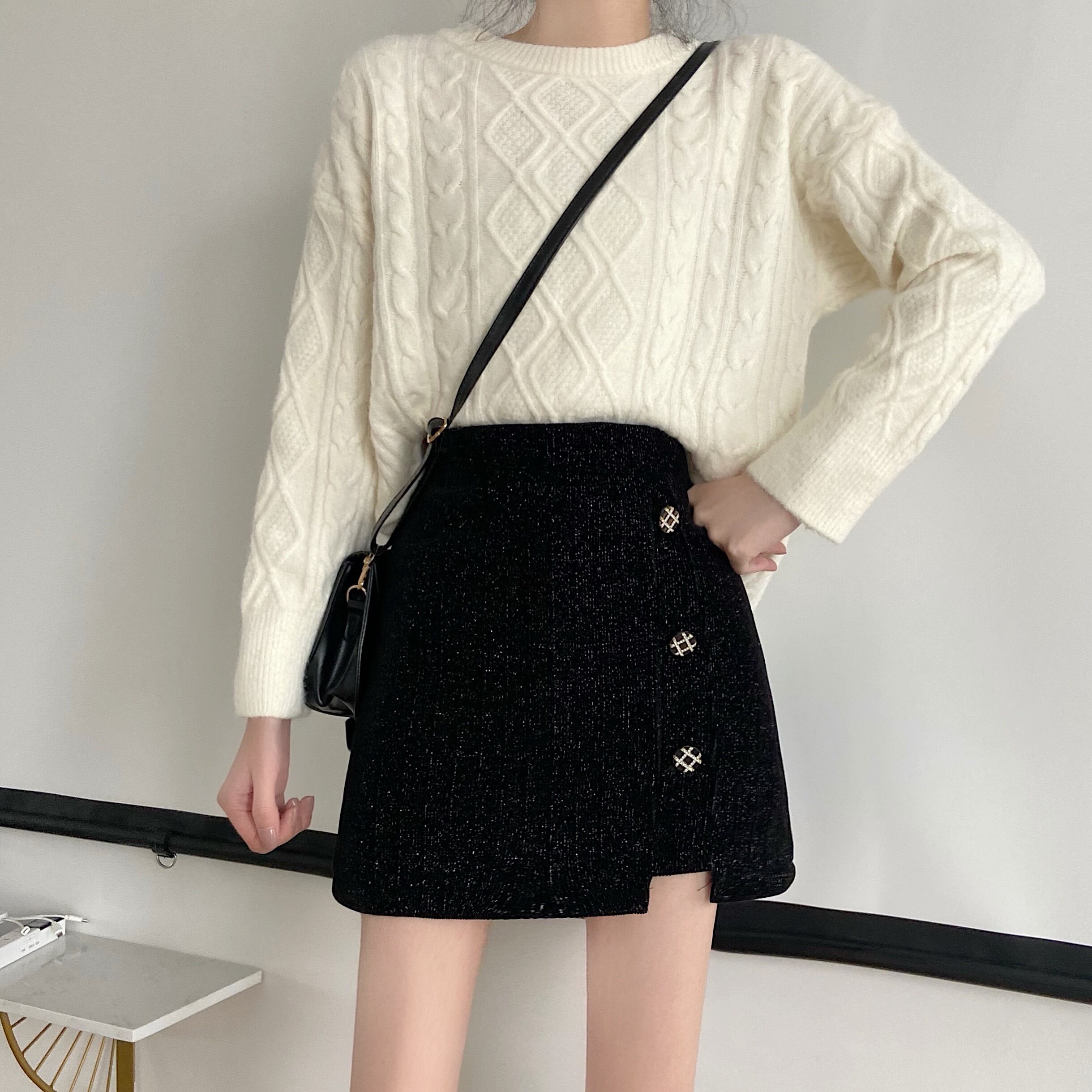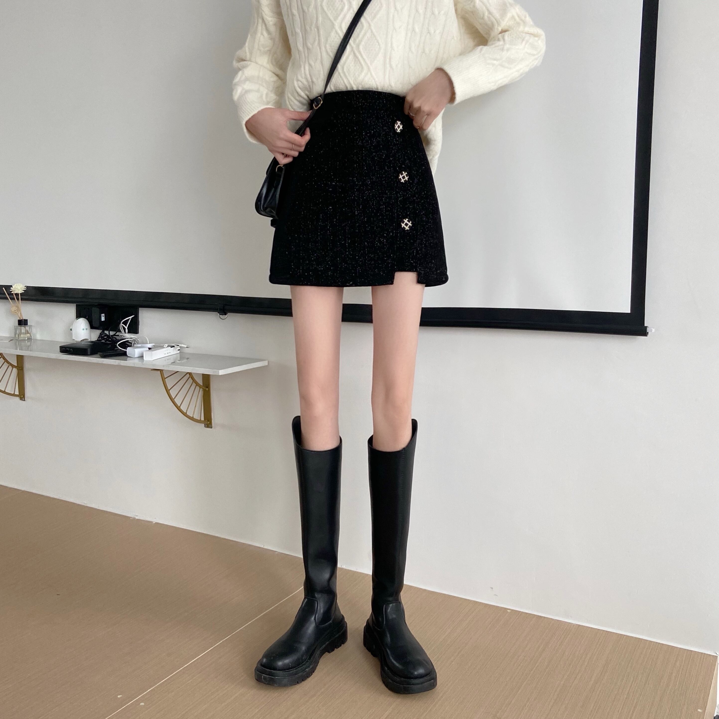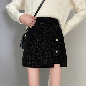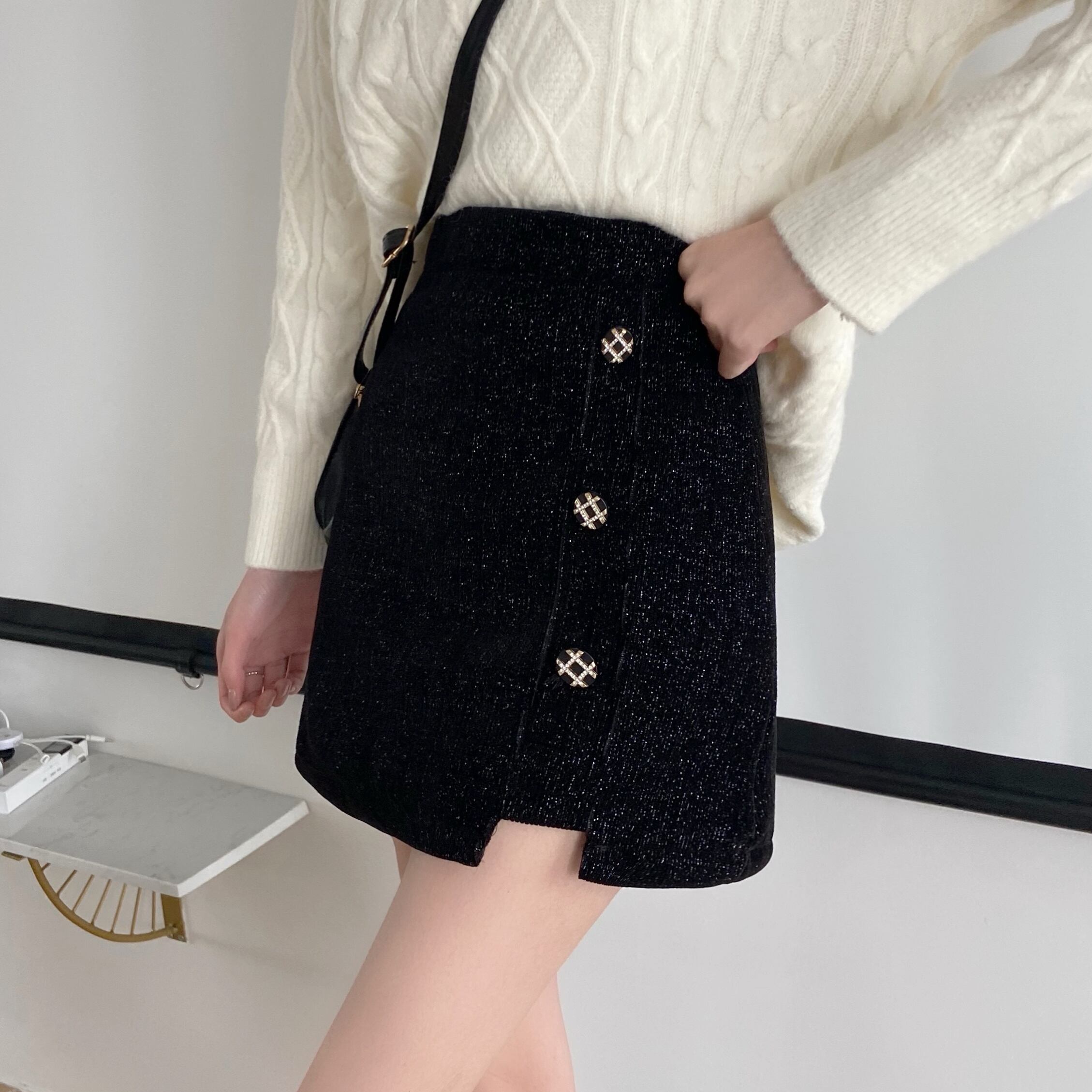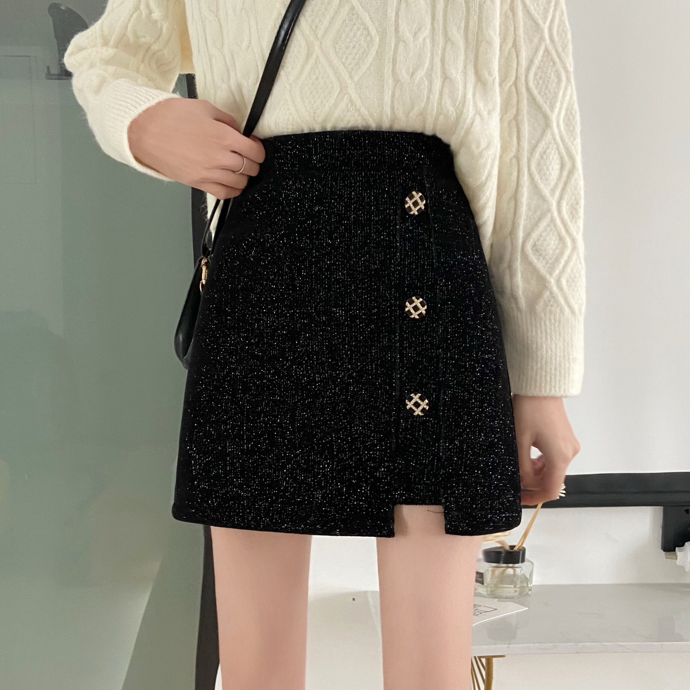 オータムウィンターハイウェストウェストスリムバックルスタイルブラックAラインスカート レディース 秋物 冬物 YY-ファッション42004603240