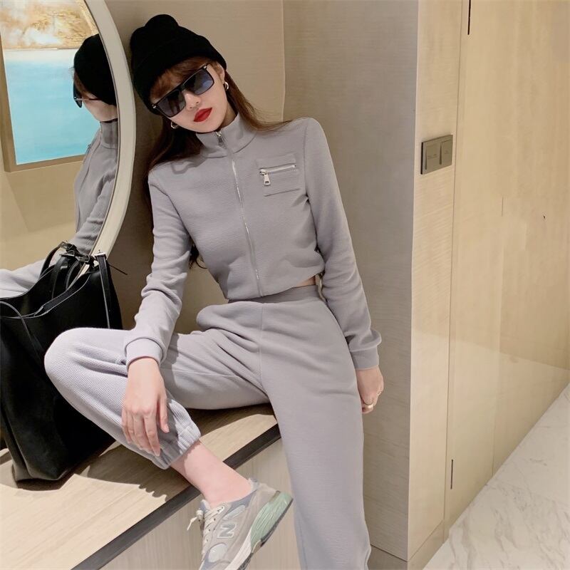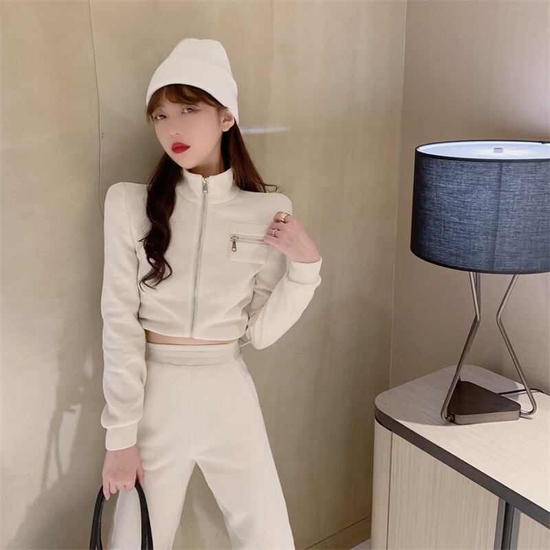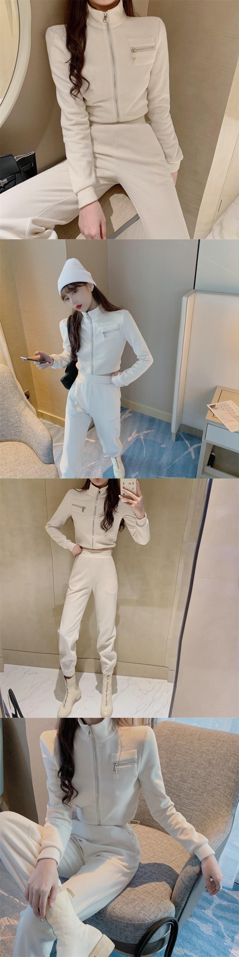 レディースカラーショートジャケット ハイウェストパンツ ロング YY-ファッション76272833646