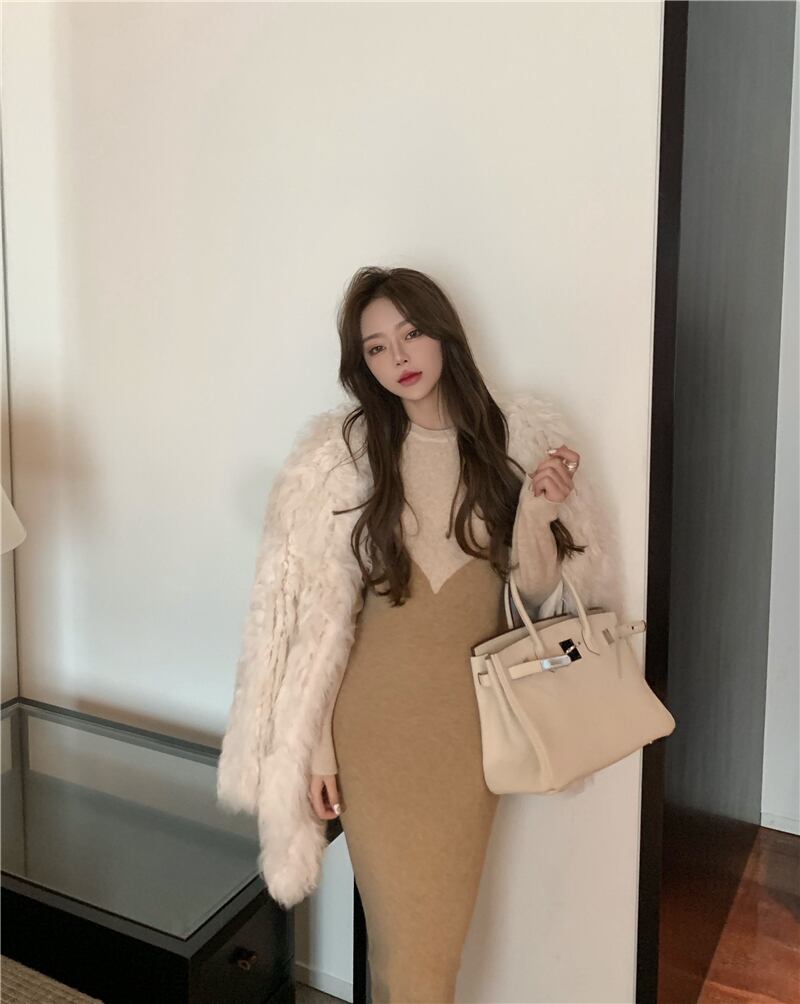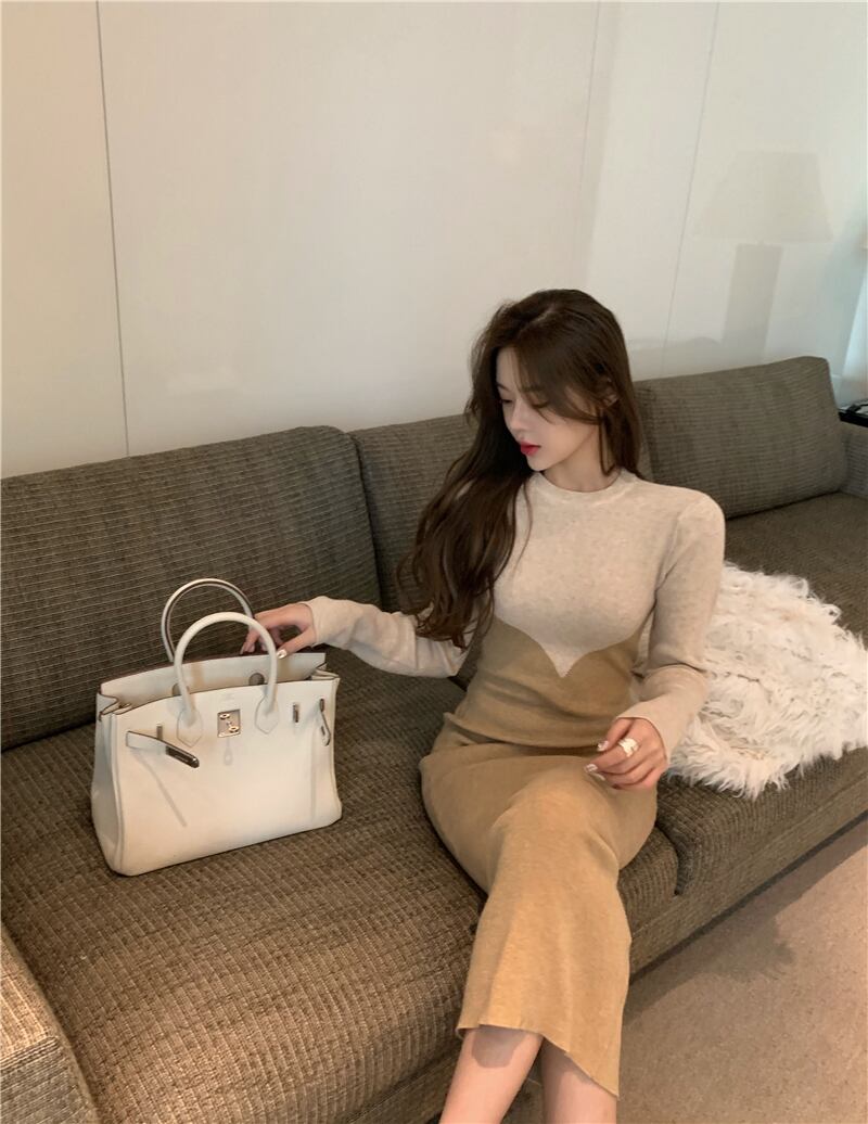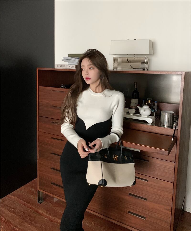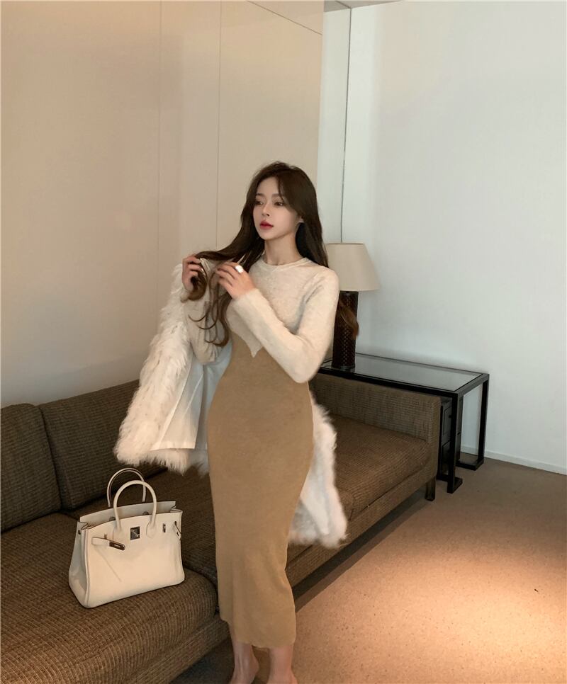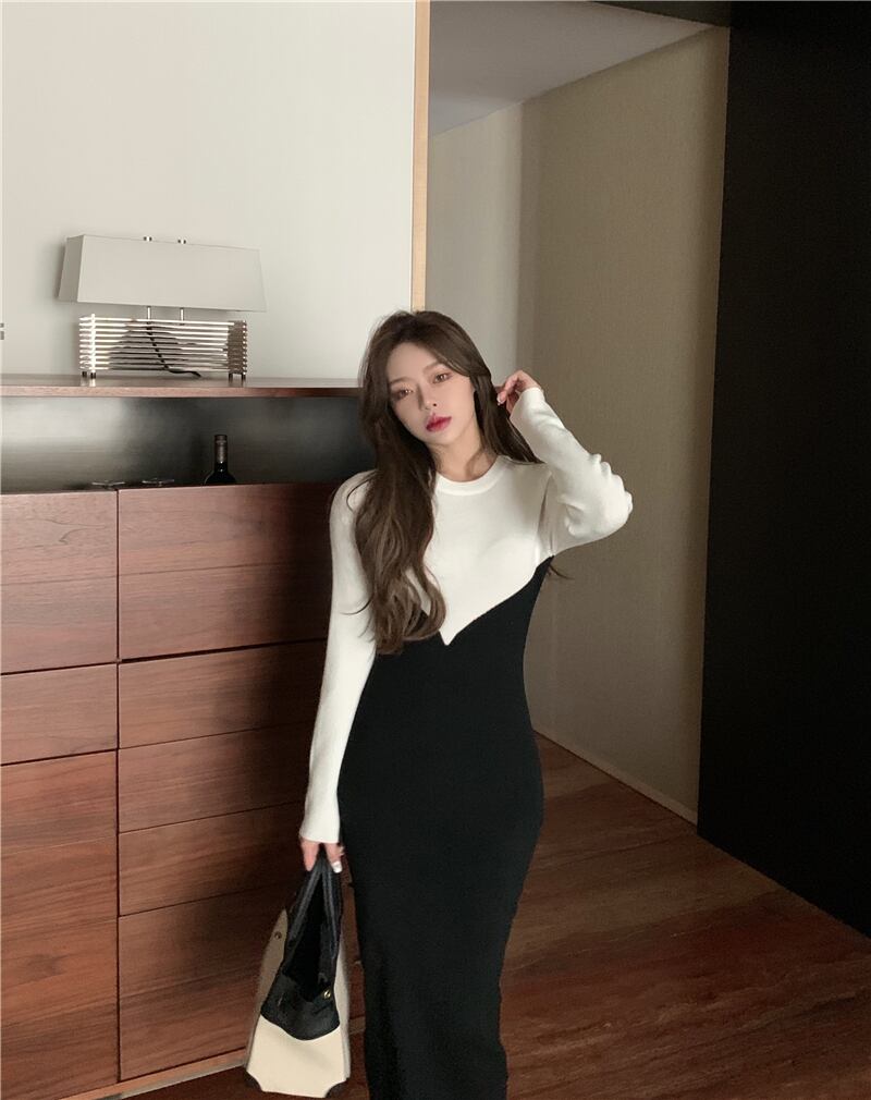 ウェストスリムニットロングスカート オータムウィンター薄手ドレス ストリート 秋物 冬物 YY-ファッション43521375034