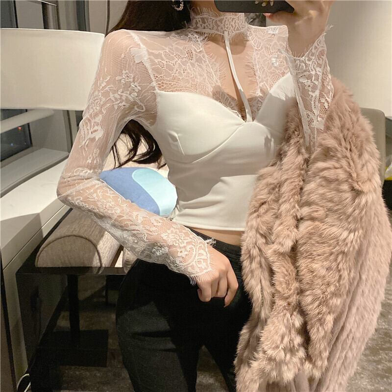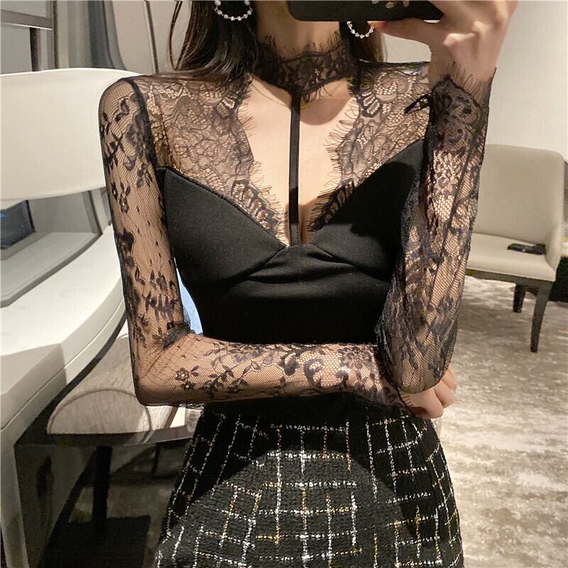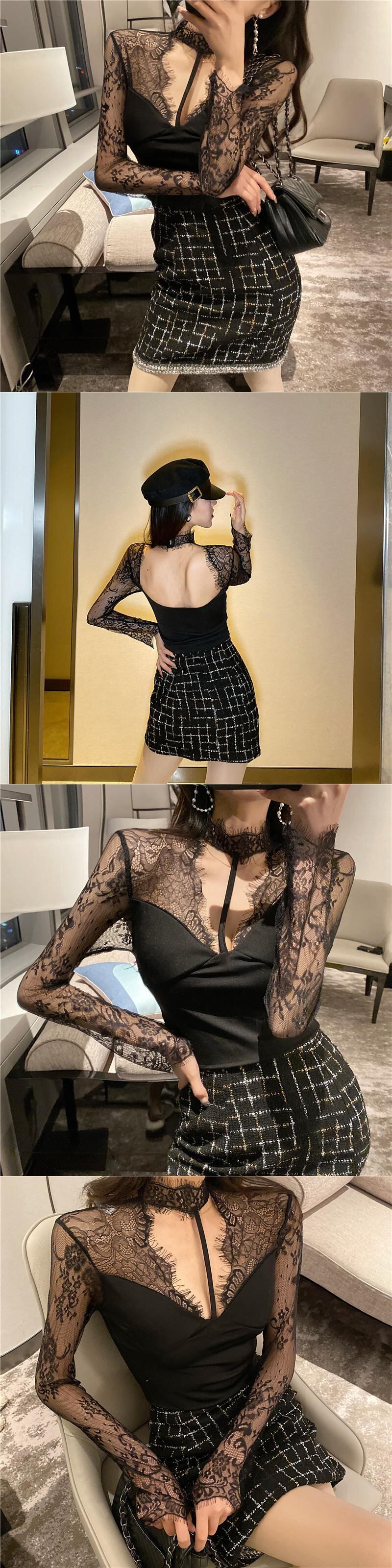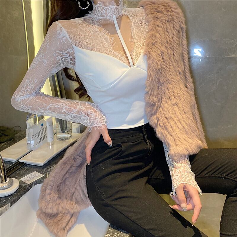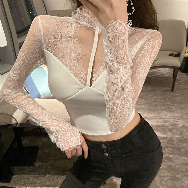 オータムVネックレースシャツ トップス スリムショート長袖スリーブレディース ロング 秋物 YY-ファッション93822730128