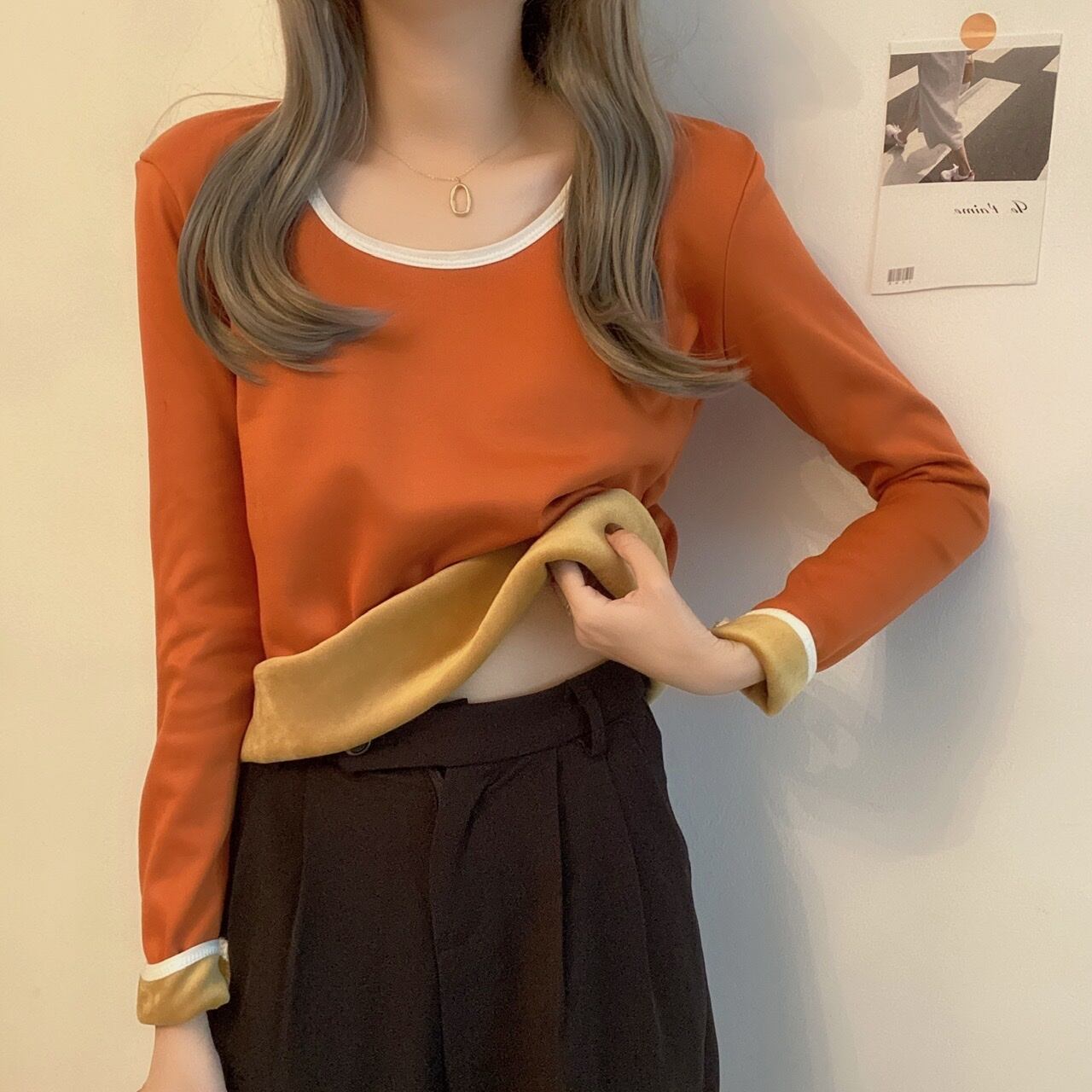 ベルベットサーマルスプリングラウンドネックシャツ Tシャツ トップス ロング 春物 Oネック YY-ファッション38743675181