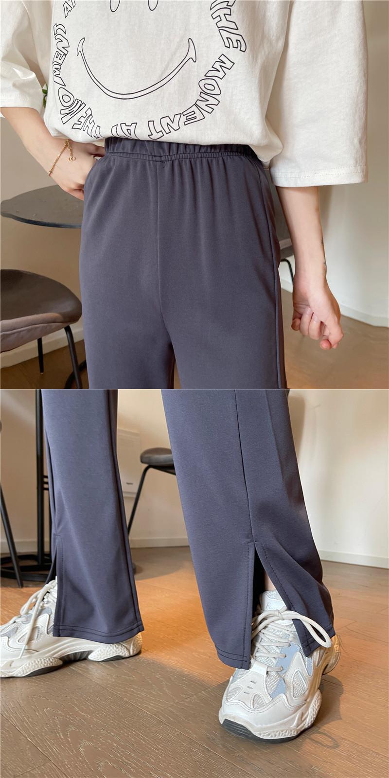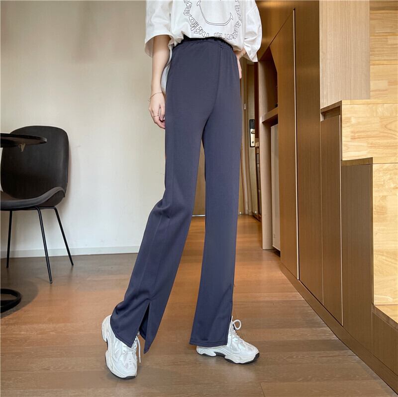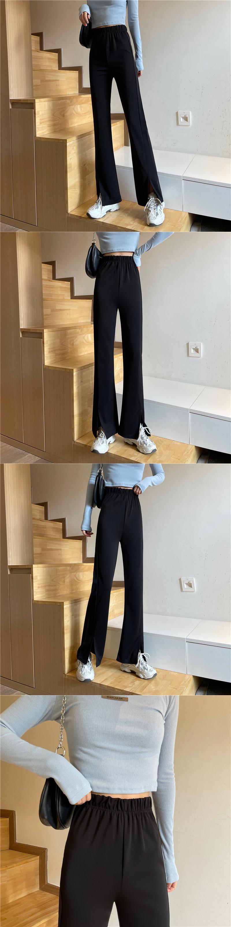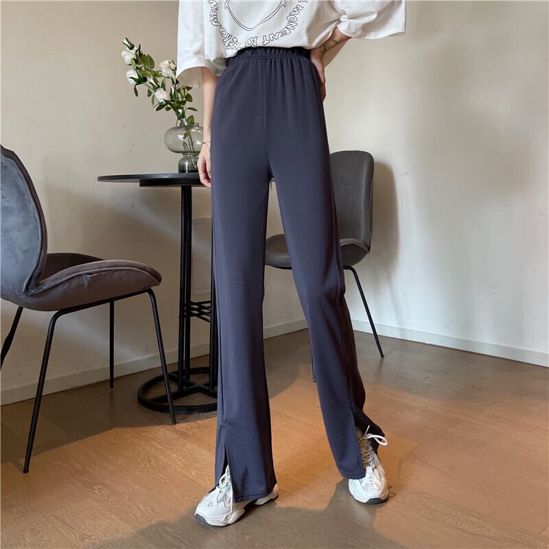 スプリングオータムレッドハイウェストウェストワイドレッグパンツ スリット 春物 秋物 ワイドパンツ YY-ファッション5213037056