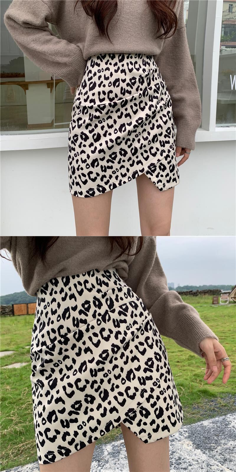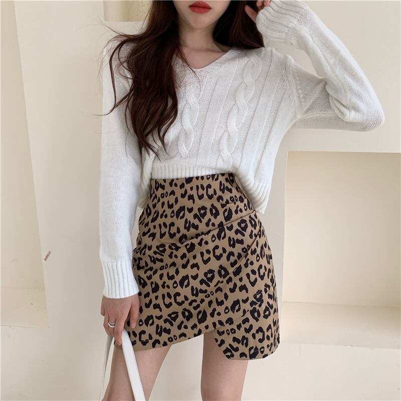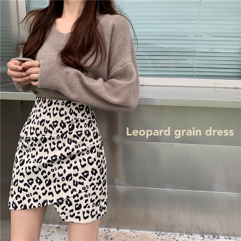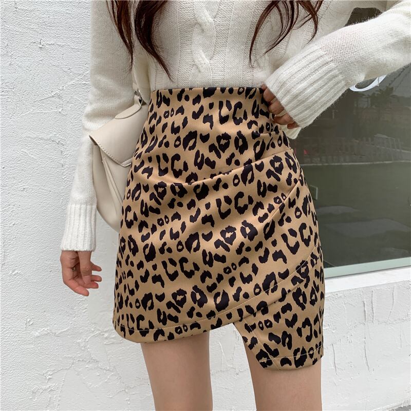 オータムレオパードプリント柄スカート ハイウェストウェスト薄手Aラインショート 秋物 YY-ファッション99461678390