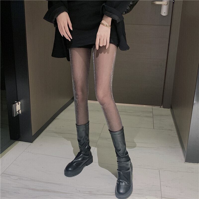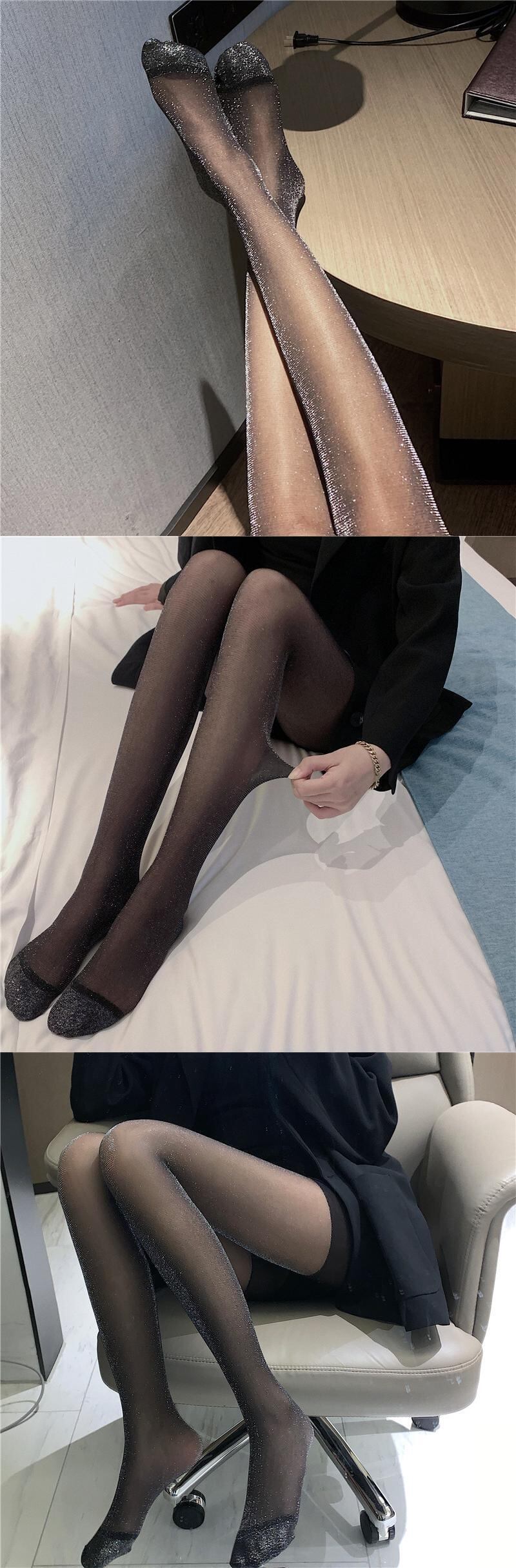 シルバーソックス ストッキング ブラックロンパース オールインワン 薄手レギンス レッド タイツ シルク 銀 YY-ファッション759992813
