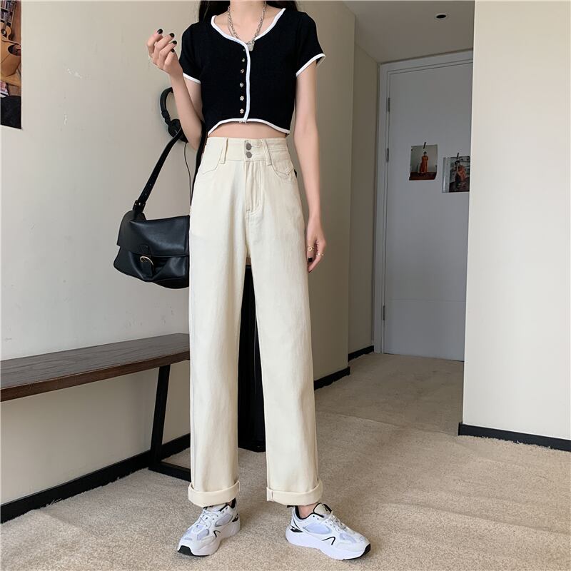ジーンズ ルーズスプリングハイウェストウェストワイドレッグスリムパンツ 春物 ワイドパンツ YY-ファッション49479839680