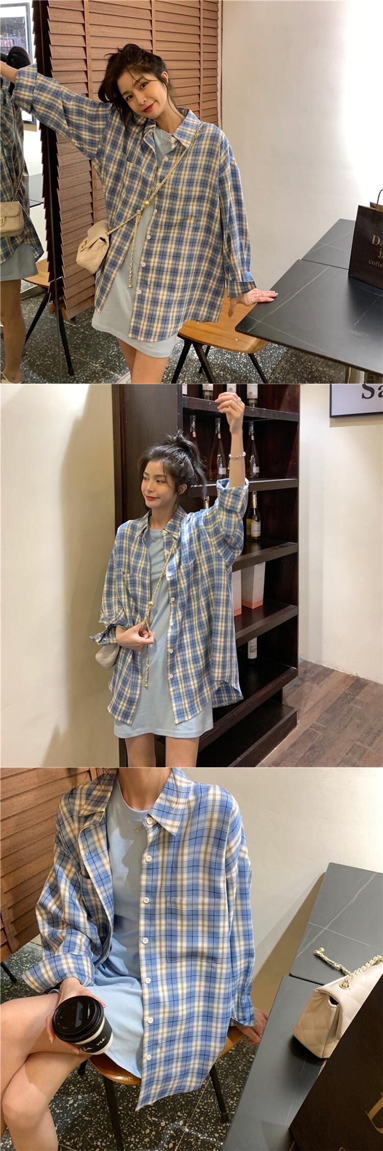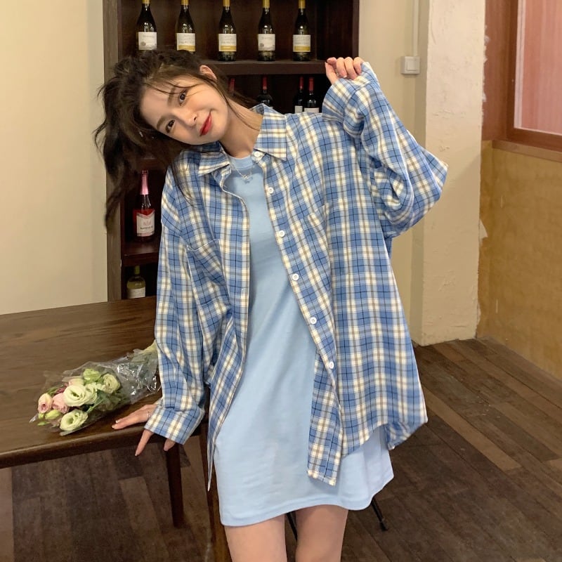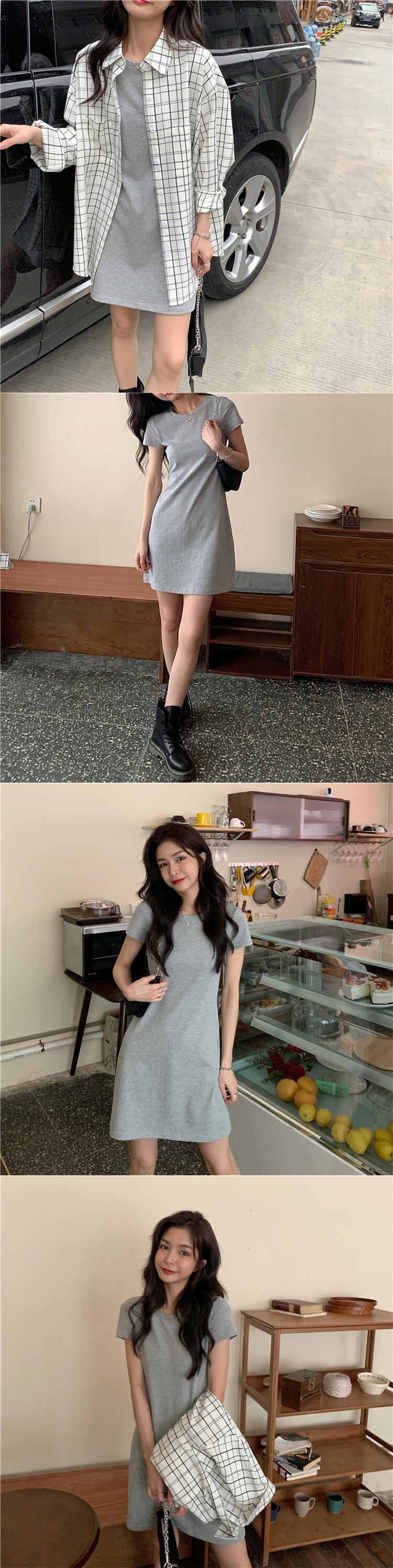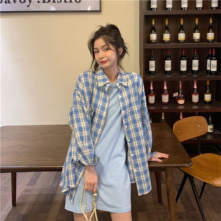 色:グレーTシャツスカート,黒のTシャツスカート,ブルーTシャツスカート,白い格子縞のシャツ,黒のチェック柄シャツ,青い格子縞のシャツ