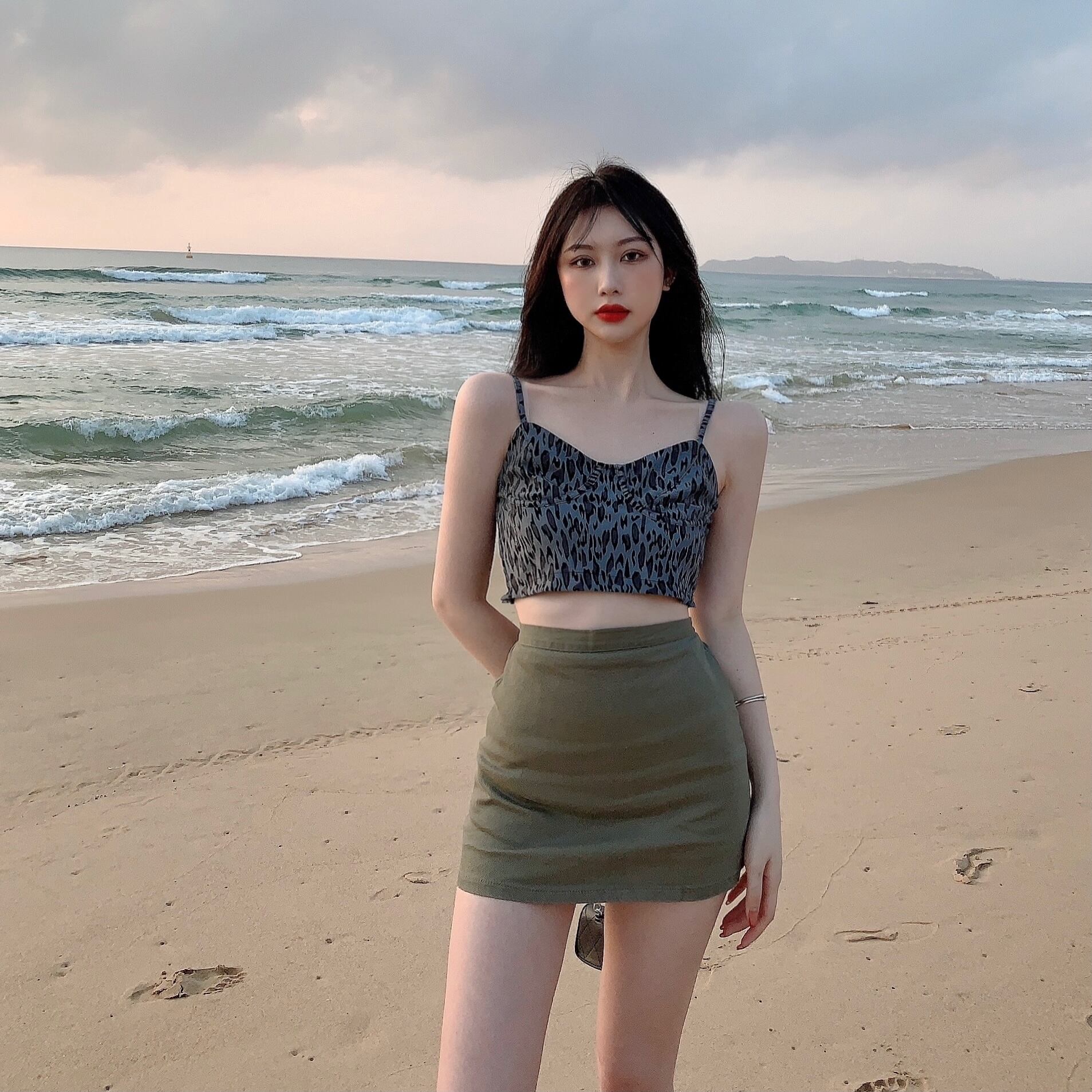 ウェストスタンダードスカート サマースリムAラインレオパードプリント柄 レトロ 夏物 YY-ファッション42565587488